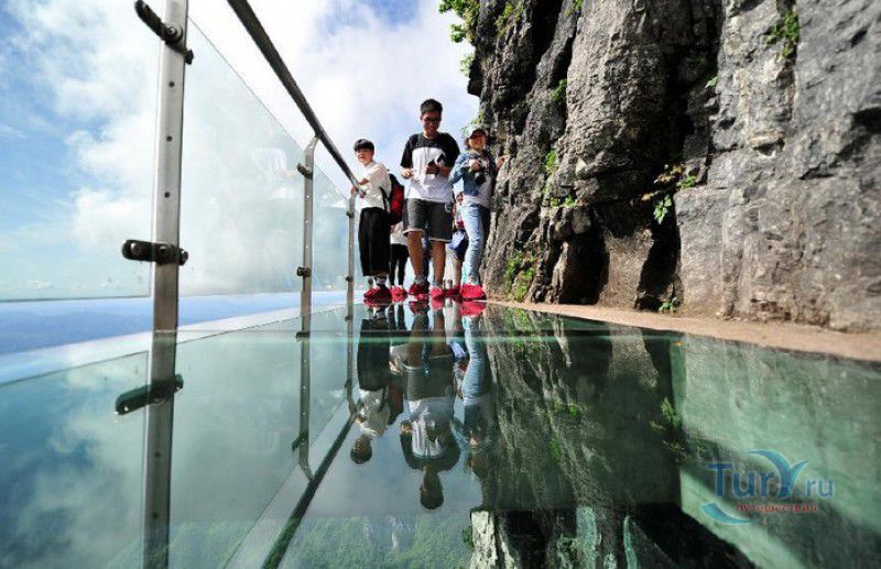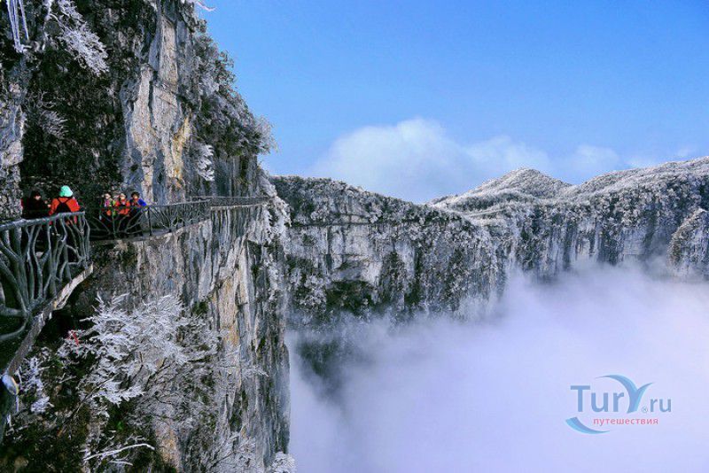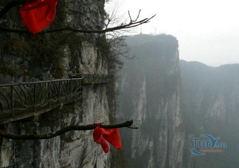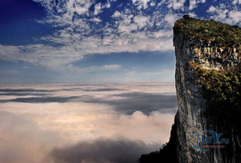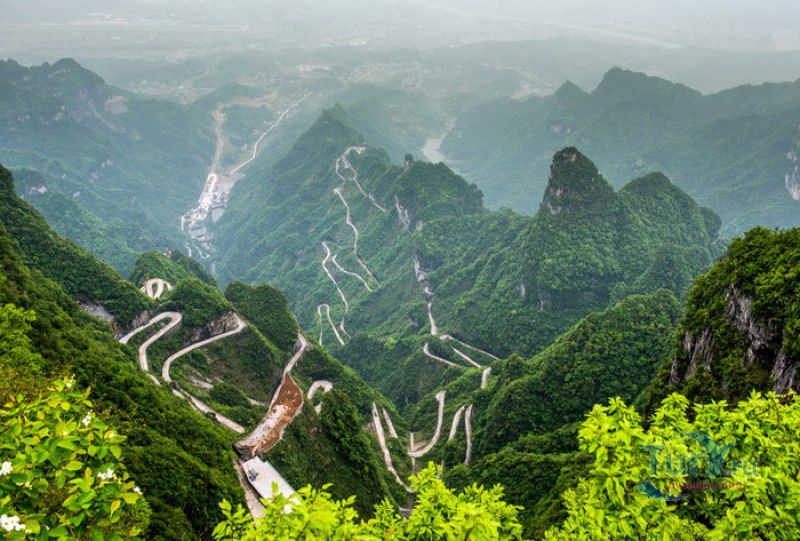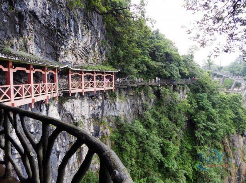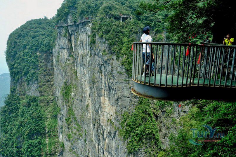 Гора Тяньмэнь (Тяньмэньшань) расположена на северо-западе провинции Хунань, в 8 км от центра города Чжанцзяцзе. Тяньмэньшань является одной из самых известных и посещаемых достопримечательностей Национального парка Тяньмэнь. Тяньмэньшань - первая гора в Чжанцзяцзе, которая была точно измерена специалистами, её вершина находится на высоте 1518,6 метров над уровнем моря. Мировую известность гора получила благодаря самой высокой в мире пещере, образованной в результате эрозии скальной породы. Пещера появилась в 263 году, когда большой кусок горы внезапно отвалился, образовав огромный проём высотой 131,5 метров, шириной 57 метров и глубиной 60 метров. Местные жители верят, что гора заключает в себе сверхъестественные, мистические силы, а пещера - это Небесные врата, которые охраняют Восемь Бессмертных. Очевидцы рассказывают о невероятном природном явлении - несколько раз во время значимых для страны событий (в 1949 году - образование КНР, в 1976 году - смерть Мао Цзэдуна, в 1989 году - подавление студенческих выступлений в Пекине и в 1998 году - крупнейшее наводнение В Китае) с вершины горы обрушивались потоки воды. Каждый раз водопад длился четверть часа и потом неожиданно прекращался. С давних времён ходят слухи о спрятанных в пещере несметных сокровищах, привезенных сюда одним из руководителей крестьянского восстания во времена правления династии Мин. Сотни кладоискателей покоряли вершину горы Тяньмэнь в надежде найти клад. Пока все попытки тщетны. А ещё говорят, что на горе живут единороги. Но и без мистики гора Тяньмэньшань привлекает тысячи туристов со всего мира своими потрясающими пейзажами. К вершине горы ведёт самая длинная в мире канатная дорога, её протяжённость - 7455 метров, количество кабин 98, перепад высоты - 1279 метров. В некоторых местах канатная дорога резко поднимается вверх под углом 37º, буквально "врезаясь" в облака. Автомобильная дорога, проложенная от подножия горы к её вершине, совершает 99 поворота, длина трассы - 11 километров, расстояние между поворотами от 200 до 1300 метров. Горный серпантин называют "Небесное шоссе". Непосредственно к пещере Небесные врата можно подняться по крутой лестнице, состоящей из 999 ступеней, время подъёма по ней - около 30 минут. От станции канатной дороги на вершине Тяньмэнь начинается пешеходный маршрут по проложенным по самому краю пропасти тропам, длина маршрута - 800 метров, а высота, на которой окажутся любители острых ощущений - 1400 метров над уровнем моря. Самый захватывающий участок - это стеклянная тропа. Прежде чем ступить на стеклянный пол, посетителей попросят надеть бахилы, и после этого можно "пройтись" по облакам. Виды, открывающиеся отсюда, очевидцы описывают как "волшебные", "потрясающие" и "невероятные". На самой вершине горы расположен буддийский храм, построенный во времена династии Тан. Храму уже более 500 лет, он и по сей день является одним из главных мест паломничества в провинции Хунань.