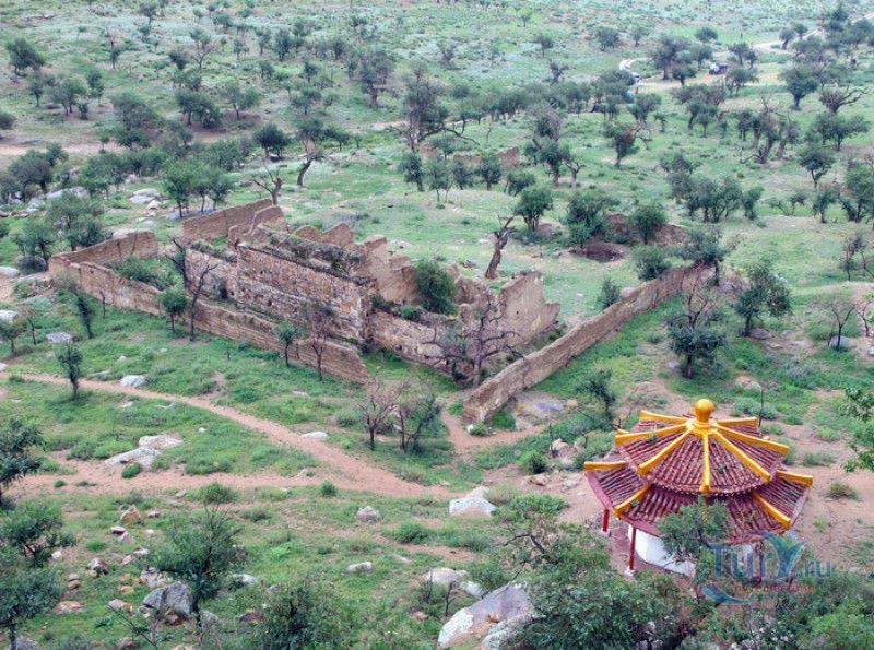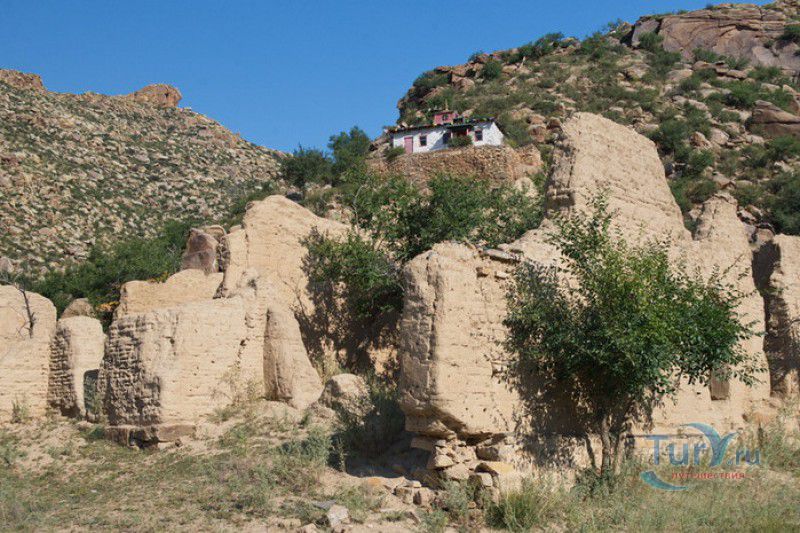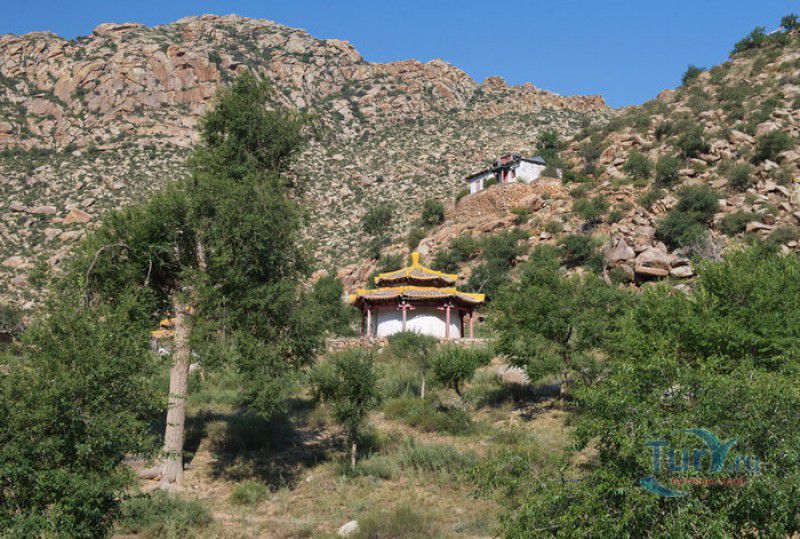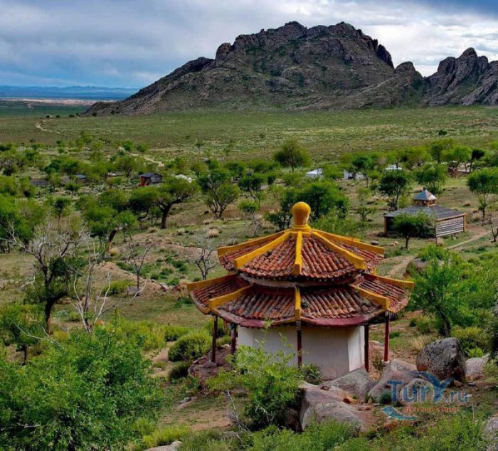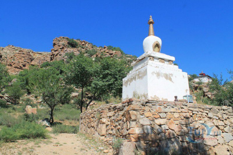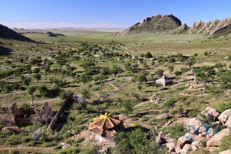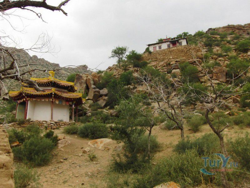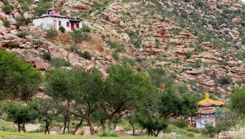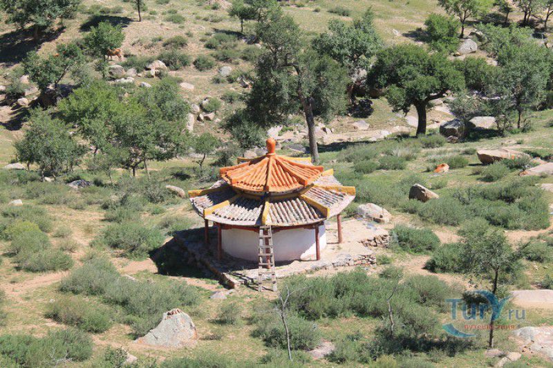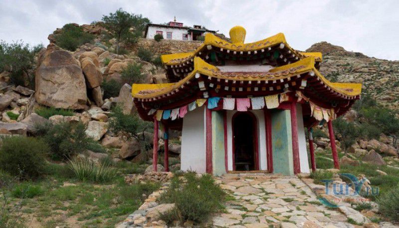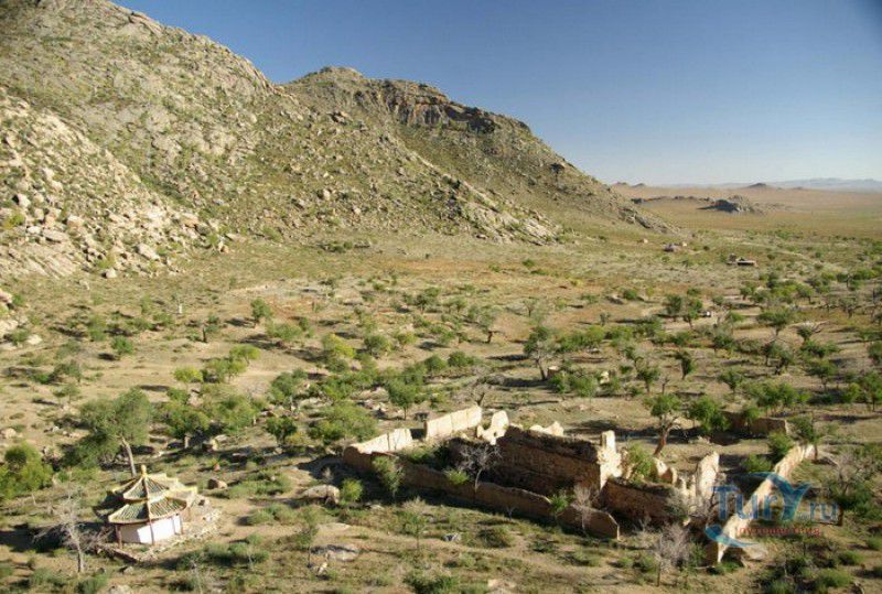 Монастырь Овгон (Монастырь Эрдэнэ Кхамба) расположен в центральной Монголии, в провинции Булган, у подножия горы Хогно Хан. Монастырь Эрдэнэ Кхамба в 1660 году основал первый Богдо-гэгэн Монголии Занабазар в честь своего учителя ламы Эрдэнэ, который и стал первым настоятелем монастыря. Место для строительства монастыря было выбрано не случайно, ещё в 842 году на горе Хогно Хан поселился тибетский буддийский монах, проживший здесь, молясь и медитируя, долгие годы, а в 1612 году на священной горе был возведен небольшой храм. Монастырь, построенный Занабазаром, имел 13 храмов, центр для медитации и был способен вместить более 1000 монахов одновременно. Эрдэнэ Кхамба состоял из двух монастырей, верхний монастырь назывался Залуу Хийд (Храм Начала), нижний - Овгон Хийд (Храм Старейшины). В 1688 году монастырь был полностью разрушен и разграблен армией правителя западно-монгольского Джунгарского ханства Галдан-Бошогту. Непримиримый спор между Занабазаром, правителем Халхи, желавшим войти в состав империи Цин, и Галдан-Бошогту - его ярым противником, закончился войной. Армия Галдан-Бошогту вторглась в Халху, во время перехода через гору Хогно Хан воины заметили золотые крыши монастыря и напали на него. Храмы и святыни были разрушены, все монахи убиты. В 1700 году нижний монастырь был заново отстроен, он состоял из трёх храмов и четырёх святилищ, в монастыре жили 200 буддийских монахов. В 1937 году, во времена религиозных репрессий в Монгольской Народной Республике, монастырь был снова разрушен, 20 лам высшего ранга расстреляны, остальные сосланы в лагеря. Восстановление монастыря началось в начале 90-х годов XX века, после победы Демократической революции. Были построены главный храм Хугну-тарни, несколько пагод и субурганов. Верхний же монастырь Овгон Хийд так и остался лежать в руинах. К развалинам ведёт крутая извилистая тропа, протяжённость пути - около двух километров. Овгон Хийд был построен посреди берёзовой рощи, большой редкости для местного ландшафта. Некогда пышная роща сейчас безжизненна, от неё остался лишь частокол сухих стволов - местные жители верят, что деревья "умерли" одновременно с жестоко убитыми монахами. Руины монастыря постепенно поглощают густые заросли, но массивные каменные стены Овгон Хийда устояли против вандалов и времени, в развалинах монастыря ещё можно разглядеть контуры храмов, святынь и внутренних двориков.