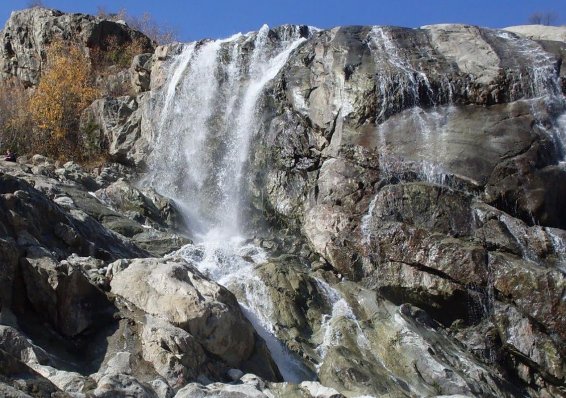 Алибекский водопад - это один из самых больших и эффектных водопадов в Домбае и Карачаево-Черкесии. Этот популярный объект пешеходного туризма находится на территории Тебердинского заповедника. Маршрут к водопаду сравнительно легкий, поэтому подойдет даже для неподготовленного туриста. Первая часть пути проходит по грунтовой дороге до альплагеря "Алибек", ее можно преодолеть на машине. Оставшаяся часть пути проходит по горной тропе, через альпийские луга, затем через березовое криволесье. С полян открывается панорама на окрестные вершины - слева от дороги возвышается красавица гора Белалакая, Пик Кап, с живописным водопадом на склоне; справа - массив вершины Семенов-Баши; впереди вершины Сулахат, Джаловчат и Пик Квадратный. На последней поляне Узун-Тала, перед тропой к водопаду, открывается великолепный вид на вечные снега вершин Главного Кавказского Хребта - Эрцог, Джаловчат, Пик Алибекский. В конце поляны тропа разветвляется на две: прямо идет дорога к Турьему озеру, налево, в березовое криволесье, уходит тропа к водопаду. Сначала слышится гул от падающей воды, а затем, сквозь листву показывается и сам водопад. Он очень мощный и шумный, его еще называют "грозным" из-за большого грохота ниспадающей воды с высоты 25 метров. Водопад образуется падением речки Джаловчатки с Алибекского ледника. В 1930-е годы его еще не было, а скальчатый уступ был накрыт языком Алибекского ледника. Ледник каждый год отступает вверх на метр-полтора, камни, с которых падает вода, называют "бараньими лбами".