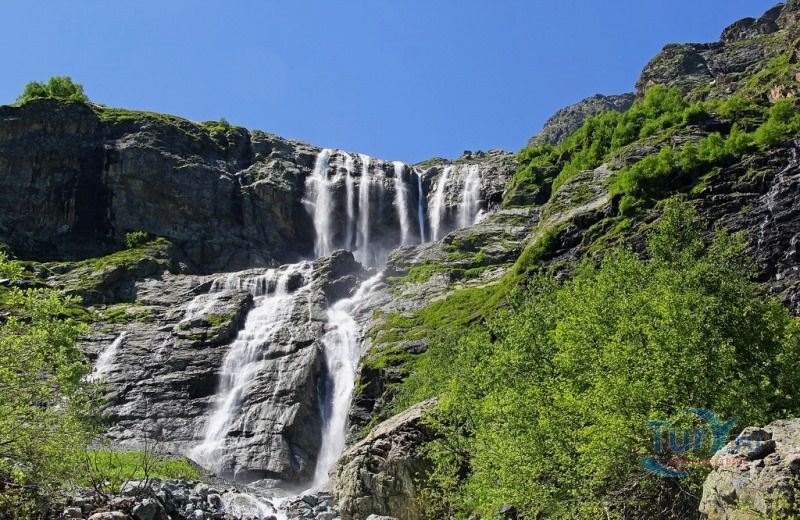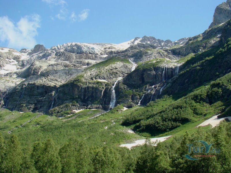 От Софийских водопадов отлично просматривается вся долина реки Софии до впадения в реку Псыш, горные хребты, сходящиеся к Архызской котловине.