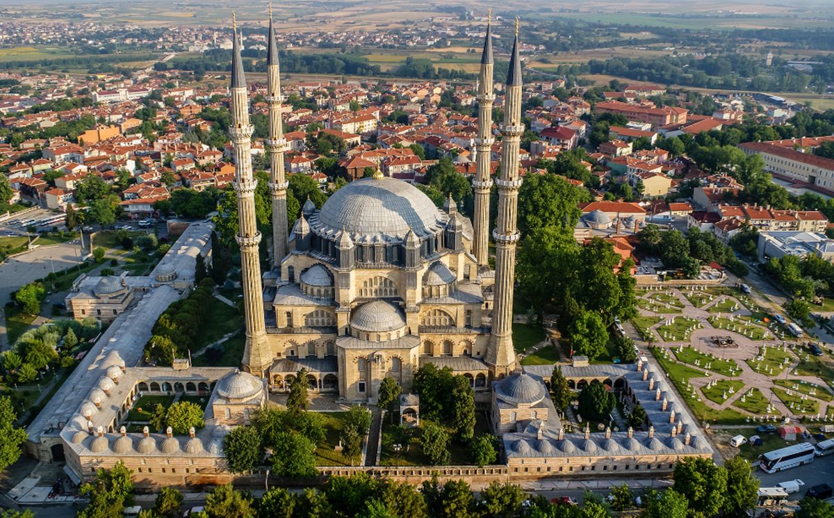 Мечеть Селимие - один из самых выдающихся архитектурных шедевров исламской культуры. Этот храмовый комплекс включает в себя школу, библиотеку, больницу, бани, медресе, часовую комнату, несколько магазинов. Сооружение было построено в 1568-1574 годах знаменитым архитектором Синаном, который считал эту мечеть своей лучшей работой. Когда строился этот архитектурный шедевр зодчему было около 90 лет. Мечеть Селимие была построена по распоряжению Селима, сына султана Сулеймана и его жены Роксоланы. При строительстве мечети Селимие Синан создал уникальную восьмиугольную систему поддержки сводов, которая состоит из восьми надежных колонн. Восьмигранник позволил сделать их не очень массивными и, отодвинув к стене, расчистить центральное пространство мечети. Небольшие полукупола, которые чередуются с простенками, почти незаметны снаружи. По фасаду очень отчетливо видно восемь контрфорсов, которые придают круговой вид всему сооружению. При первом осмотре можно не заметить прямоугольную планировку мечети, которая замаскирована оригинальными архитектурными решениями. В самом центре мечети расположен великолепный фонтан, покрытый интересной резной крышей, довольно редкой для культового сооружения тех времен. Четыре минарета высотой около восьмидесяти метров, установлены по углам мечети. Они практически вдвое выше центрального купола и являются вторыми в мире по высоте после минаретов Мекки. Внутри минаретов находятся красивые и изолированные друг от друга винтовые лестницы, по которым можно забраться на балконы (их по три у каждого минарета). Свет в помещение мечети поступает через 24 окна, расположенных в арках. Внутренняя отделка здания искусно украшена пурпурным мрамором, деревянной резьбой и каллиграфией. В молельном зале над шестью мраморными колонами расположены пять куполов. Кроме того, он украшен витражами и резьбой по мрамору. В декоративном оформлении внутреннего двора использован мягкий эдирнейский красный песчаник. Вокруг михраба и в султанской галерее слева от него находятся прекрасные изникские изразцы. Мечеть Селимие, построенная из тесаного камня, находится на небольшом возвышении. В окружении четырех высоких, устремленных в небо минаретов, она доминирует над всеми городскими сооружениями и отлично видна отовсюду. Вход в мечеть разрешен и для немусульман. Мечеть Селимие входит в число основных достопримечательностей не только города Эдирне, но и всей Турции. В 2011 году мечеть Селимие внесена в список Всемирного наследия ЮНЕСКО.