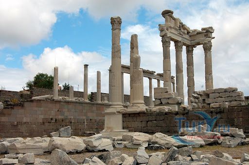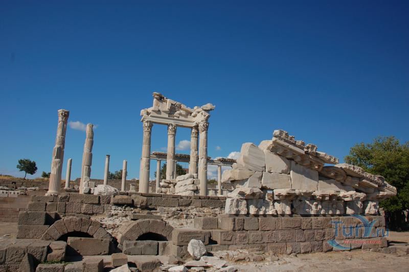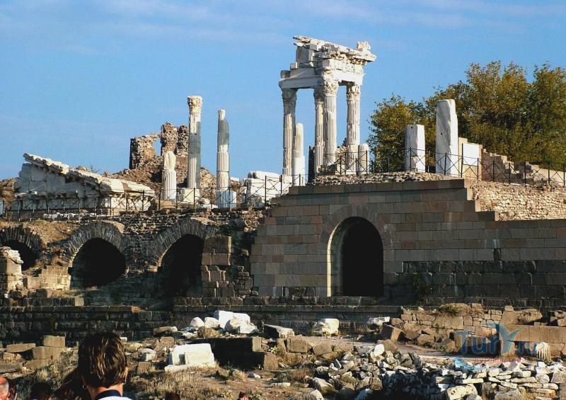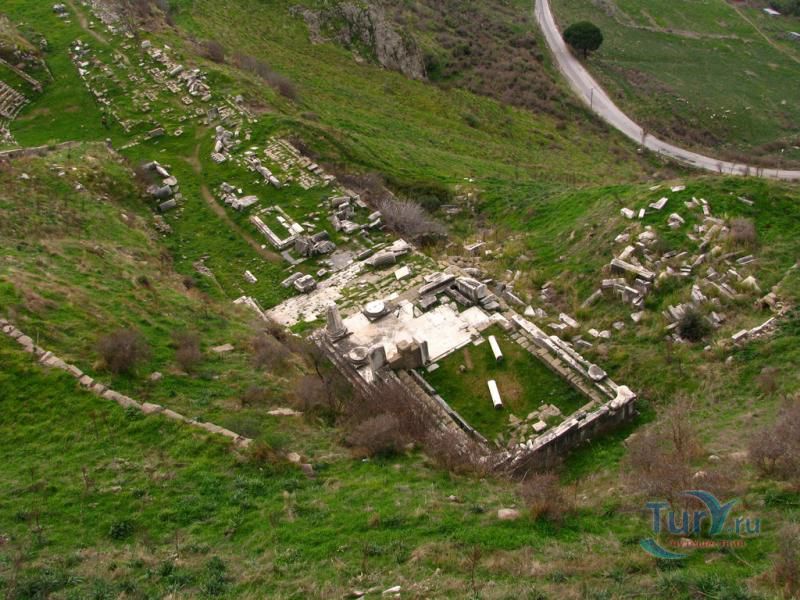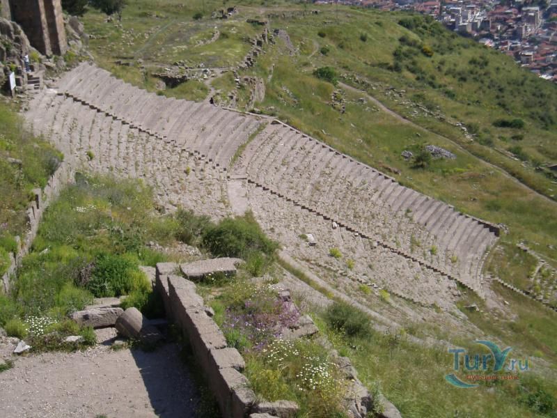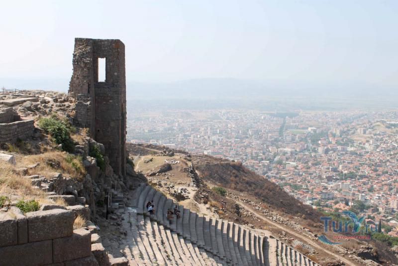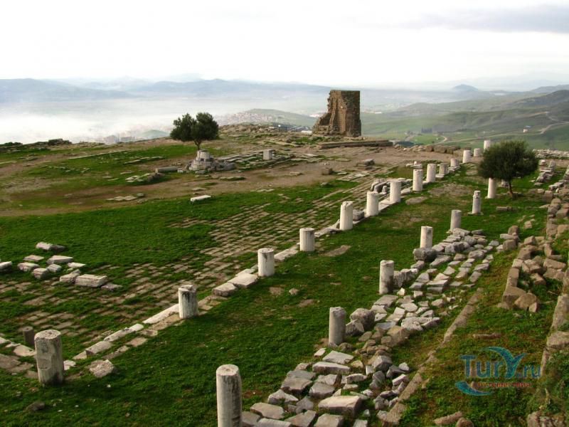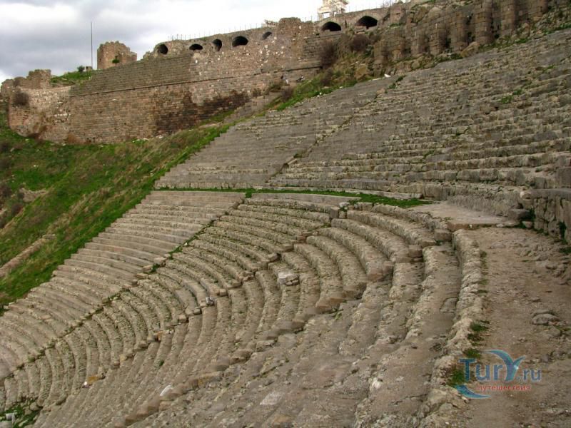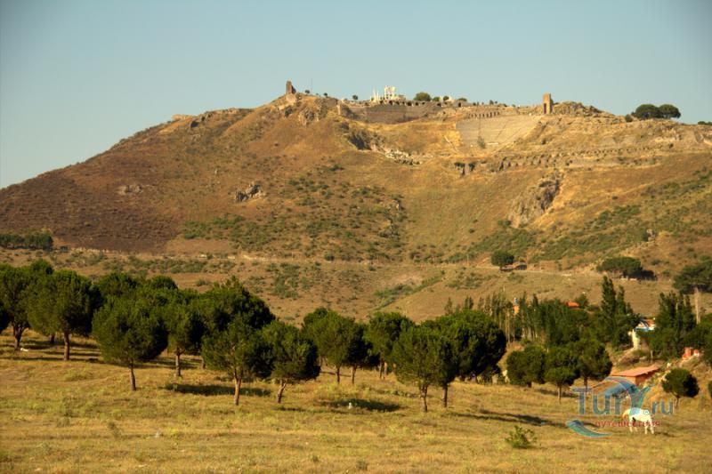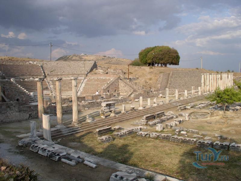 Акрополь Пергама - главная достопримечательность современного города Бергама (древнегреческого города Пергамон), находящаяся на вершине господствующего над городом холма. Акрополь Пергама был построен по подобию Акрополя в Афинах. А к украшению пергамского Акрополя приложили свою руку самые великие мастера античности. Первое что бросается в глаза путешественнику во время визита на Акрополь Пергама – это древние гробницы, которые принадлежат пергамским царям и знаменитым вельможам. Слева от входа в Акрополь Пергама можно увидеть остатки Пропилей Акрополя – монументальных ворот, которые по подобию афинских Пропилей украшали вход в крепость Пергамона. Пройдя Пропилеи, путешественник попадает на площадь Акрополя, которая в древности была окружена колоннадами дорийского стиля. А пройдя эту площадь, можно увидеть остатки древнего храма Афины, богини, которая в античные времена считалась покровительницей всех городов. На Акрополе Пергама также сохранились фрагменты античных домов, военных казарм, и остатки античного Арсенала. В хорошем состоянии находится храм Траяна, который был тщательно отреставрирован во второй половине 20-го столетия. Обратите внимание на руины античного театра Пергама, который находится на склонах Акрополя. В древности этот театр вмещал до 10000 зрителей. Свой современный вид театр Пергама принял уже в римский период, после реконструкции, которая была затеяна императором Каракаллой. А к югу от пергамского театра находятся остатки алтаря Зевса. К сожалению, сам алтарь в 1871 году был вывезен германскими археологами в Германию, где находится и по сей день. Сегодня турецкое правительство старается вернуть это произведение искусства на родину, подняв этот вопрос в Гаагском суде.
