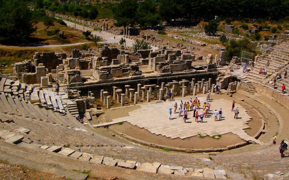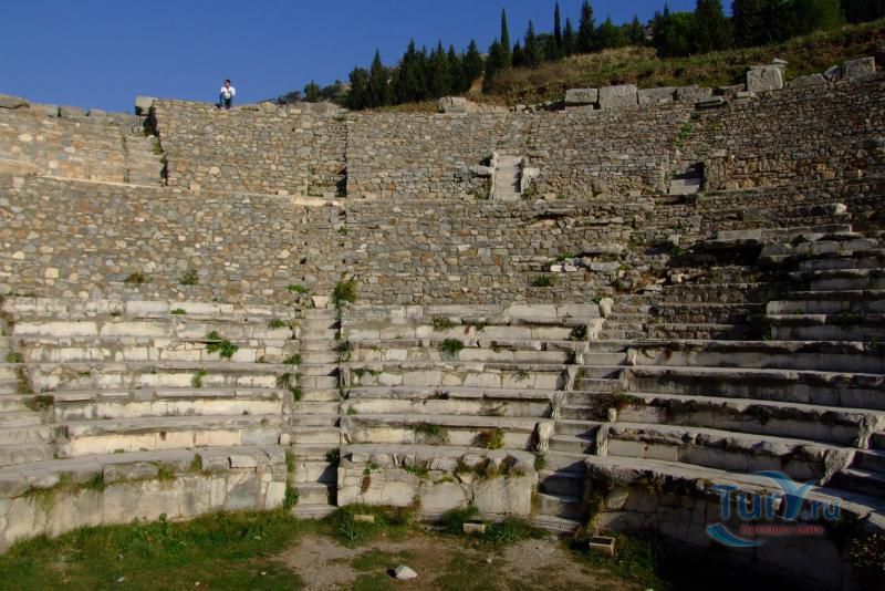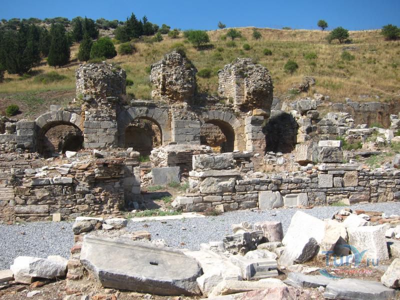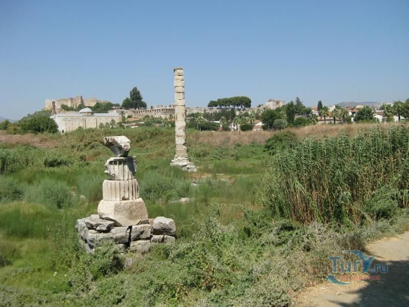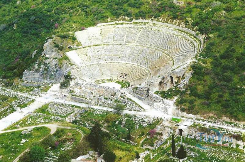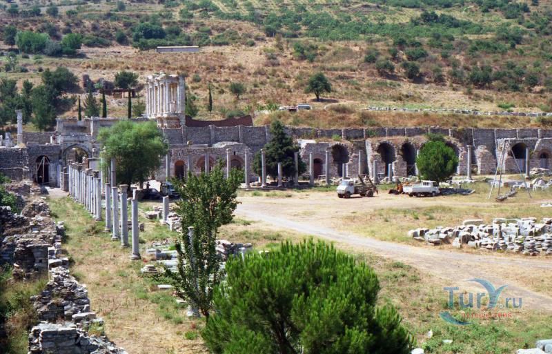 Древний город Эфес находится в окрестности города Сельчук. Эфес - город, с которым связано множество древнегреческих легенд и мифов, в первую очередь известен благодаря храму Артемиды (550 г. до н. э.), одному из семи чудес света, разрушенного по указу императора Феодосия I в 401 г. н. э. Археологический комплекс расположен в 3 км к юго-западу от города Сельчук, примерно посередине между Измиром и Кушадасами и является популярной туристской достопримечательностью. Эфес, как полагают, является городом «семерых спящих», считавшихся святыми католиками и православными христианами, подвергшимися преследованиям из-за их веры в Бога. Согласно истории, эти святые на протяжении нескольких веков проспали в пещере близ Эфеса. Практически весь Эфес представляет собой музей под открытым небом, любовно собранный и отреставрированный археологами. У музея два входа: верхний и нижний. Город удобнее осматривать по дороге, которая ведет сверху вниз. Одно из самых красивых сооружений во всем Эфесе — это построенная в 117 г. н. э. библиотека Цельсия, которая являлась своего рода монументальной гробницей Тиберию Юлию Цельсу, служившему губернатором провинции Азия в Римской империи и похороненному в саркофаге под цокольным этажом библиотеки. Строительство гробницы, вход в которую украшали две статуи Афины, богини мудрости, было подарком Тиберию от его сына Гая Юлия Аквилы. Когда-то в библиотеке хранилось более 12 тысяч рукописных свитков — некоторые размещались в шкафах и стенных нишах, другие, более ценные экземпляры — за двойными стенами позади шкафов с целью их защиты от перепада температур и влажности. Библиотека Цельсия считалась самой богатой в древние времена после библиотек в Александрии и Пергаме (Бергама). Храм Артемиды, одно из семи чудес древнего мира, представлен только одной незаметной колонной, обнаруженной в ходе археологических раскопок, которые проводились Британским музеем в 1870 году. Некоторые фрагменты фриза и другие мелкие находки, обнаруженные на месте расположения храма, сейчас размещаются в Британском музее в Лондоне и археологическом музее в Стамбуле. Одеон представлял собой небольшой крытый театр, построенный Публием Ведием Антонием и его супругой около 150 г. нашей эры. Небольшая площадка для спектаклей и концертов вмещала до 1500 человек. В театр вели 22 ступени лестницы, а его верхняя часть была украшена красными гранитными столбами, выполненными в коринфском стиле. По обе стороны от сцены располагались входы. Храм Адриана, датируемый 2 веком нашей эры, посвящен императору Адриану, посещавшему Эфес в 128 году. Фасад храма, представляющего собой одно из самых красивых и хорошо сохранившихся сооружений Эфеса, оформлен четырьмя коринфскими колоннами, поддерживаемыми изогнутой аркой, в центре которой изображена Тюхе, богиня случая и удачи. Этот храм был изображен на обратной стороне банкноты турецкой лиры (банкнота в 20 млн лир) в 2001—2005 гг. и новой банкноты турецкой лиры 2005—2009 гг. Храм Домициана был одним из крупнейших храмов в городе и представлял собой один из немногих храмов, посвященных императору Домициану. Вместимостью до 44 тысяч мест и расположенный под открытым небом театр Эфеса — крупнейший в своем роде в древнем мире. Строительство театра относится к эллинистическому периоду ко времени правления Лисимаха (3 в. До н. 