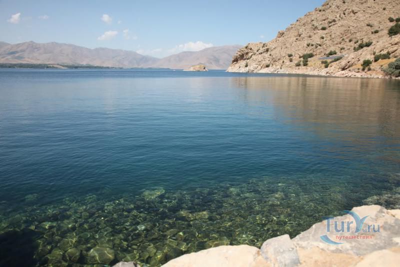 Озеро Ван - одно из самых экзотичных на нашей планете. В незапамятные времена извержение вулкана Немрут создало своеобразную «плотину», благодаря которой образовался гигантский водоем с крайне необычным составом воды. Озера бывают пресные и соленые, а Ван - содовое. Пить такую воду нельзя, а вот стирать в ней можно без мыла. Более того, из этой воды выпаривают соли для создания экологически чистых моющих средств. При этом она чрезвычайно прозрачная: на глубине пяти-шести метров видно каждый камушек. Минеральная вода из озера успешно используется при лечении переутомлений, нервных расстройств и кожных недугов. Ван - одно из четырех крупнейших бессточных озер планеты, при этом в него впадают три горных речки. Потому в различных участках водоема вода имеет разную минерализацию и плотность. Где-то она почти пресная, а в некоторых местах солонее и плотнее, чем в Мертвом море. Кое-где, лежа на поверхности, можно читать газету, но недолго, потому что холодновато. Есть у здешней воды еще одно необычное свойство - неоднородность цвета. Вероятно, из-за разницы в плотности на фоне яркого ультрамарина может возникнуть то полоса изумрудного оттенка, то абсолютно белое пятно. В озере Ван водится единственный вид рыбы. Эндемический вид лат. Alburnus tarihi (тур. darekh) на самом деле родственный европейской уклейке и принадлежит семейству карповых, однако по внешнему виду сильно напоминает сельдь. Alburnus tarihi может жить как в пресной воде, так и в солёной, максимум до солёности 23 ‰, однако размножается только в пресной воде, в устьях рек и ручьёв, впадающих в озеро Ван. Воды озера смягчают климат близлежащих окрестностей Армянского нагорья, что способствует земледелию и садоводству, позволяя выращивать на высоте 1700 над уровнем моря разнообразные плодовые деревья.