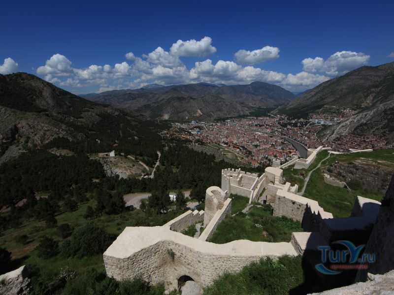 Крепость Амасьи была построена на вершине горы Харшена, как на самом подходящем месте для обороны города. Гора Харшена укрывает центр города с севера. Поэтому крепость также известна под названием крепость Харшена. Скальный массив, на котором возведена крепость, находится на высоте 700 метров над уровнем моря, и на высоте 300 метров над уровнем реки Йешильырмак, которая протекает посредине города. При постройке внутренней части крепости использовался камень, крепостные стены были возведены из битого кирпича, и имеют 8 ступеней обороны. Крепость, укрывающая город с северной стороны, состоит из 3 частей, которые расположены снизу вверх. Одна из них, внутренняя крепость, как считают историки, была построена по приказу царя Митридата примерно в 250 году до нашей эры. Другие части крепости- башня под названием «Дворец девушек» и верхняя башня, называемая Харшена. «Дворец девушек» опирается на скалу сзади, и образует террасу. На склоне этой части крепости, имеются 18 гробниц царей, высеченных в скале. В источниках указывается на то, что царский двор понтийского царства использовал террасу до 16-го века, после них террасу использовали также Сельджуки и Османская империя. Две бани во дворце до сих пор находятся в неплохом состоянии. Сельджукский султан Месуд Первый, отдавший приказ об обновлении крепости в 1146 году, сделал Амасью своим центром. Во внутренней крепости были построены мечеть, медресе, баня, дворец. Месуд Первый жил здесь до самой своей смерти. В этой части крепости можно увидеть следы исторических эпох, начинающихся от римской империи, до Османского государства. После сельджуков и бейликов, османские наследники престола, их супруги и губернаторы более 150 лет занимали эту площадь. В крепости Амасьи имеется четверо ворот, внутри крепости имеется колодец, цистерна и места казни. Башня, называемая Верхней башней, имеет также название башня Харшена. Несмотря на то, что здесь имелись много построек, все они не дошли до наших дней. В 70 метрах книзу от крепости имеется подземный ступенчатый путь 3 века до нешй эры,ведущий к царским гробницам и реке Йешильырмак, а также башня и развалины крепости. Крепостные стены начинаются от северной оконечности города и простирается до 2-х мостов, которые находятся на востоке и на западе.при постройке крепостных стен использовались особые строительные приемы и техника, и особые архитектурные планы. Самые оригинальные места крепости, дошедшие до наших дней – вершина крепости с развевающимся флагом, и стены, окружающие террасу Дворца девушек. Большая часть стен внешней крепости дошла до наших дней. В последние годы проводится реставрация крепости, при котором было уделено особое внимание верхней части крепости.