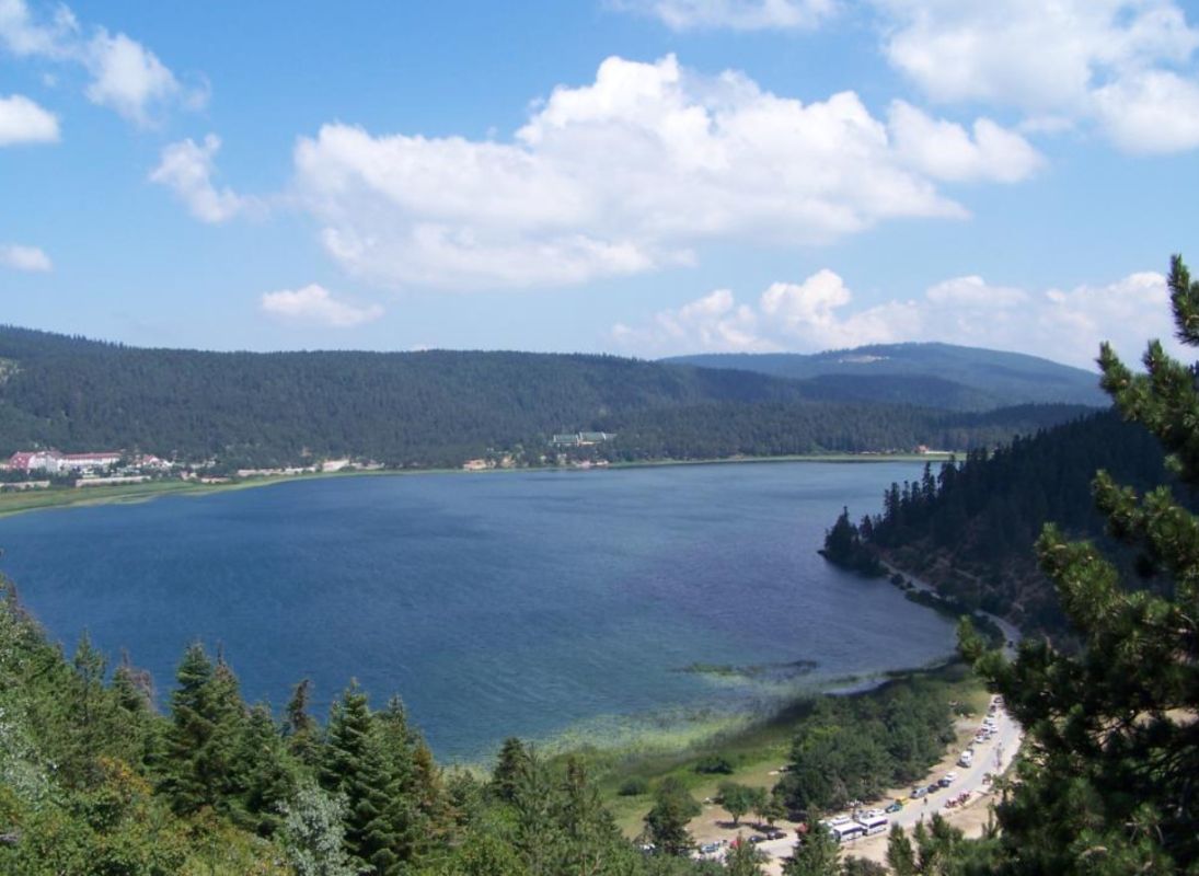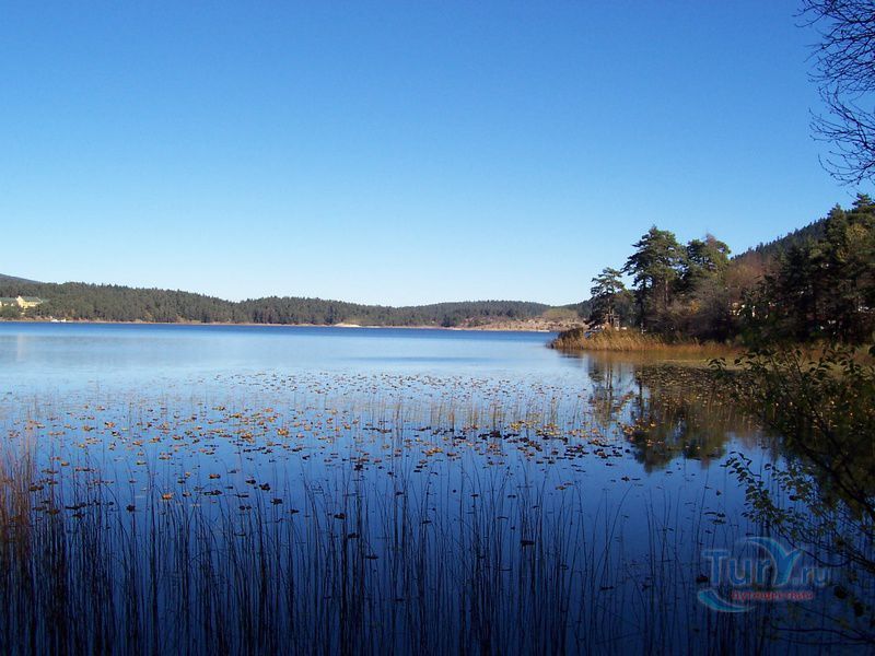 Озеро Абант - пресноводное озеро, образовавшееся в Абантских горах на высоте 1328 метров в результате большого оползня. Имеет Площадь 128 гектаров и среднюю глубину 18 метров. Благодаря необыкновенной природной красоте озера и его окрестностей, покрытых густыми живописными лесами,богатой флоре и фауне и чистейшему воздуху этих мест, в 1988 году озеро Абант было наделено статусом национального природного парка Турции. Природный парк озера Абант - популярное место отдыха не только турецких, но иностарнных туристов. Берега озера покрыты лесами, богатыми редкими видами деревьев, таких, как черная сосна, бук, лиственница, граб, ясень, ива, можжевельник, тамариск, лещина, мушмула, а также здесь встречаются цветущие кустарники (роза) и ягоды (малина, ежевика, клубника), редкие целебные травы. Воздух, вода и почва здесь настолько чисты, что это создает отличные условия для жизни здесь диких оленей. Кроме этого тут обитают лисы, зайцы, шакалы, европейские косули, некоторые виды хищных птиц, а в озере плавают выдры и главное водится эндемичный вид форели - кумжа абантская, имеющая удивительно красивый жёлтый цвет с чёрными беспорядочными пятнышками. На берегах озера есть несколько небольших уютных отелей, а местные жители предлагают массу всяческих развлечений и услуг. Здесь вам предложат покататься ослах и конных экипажах, приобрести сделанные заботливыми руками местных рукодельниц тёплые шерстяные носки в зимнее время, а также попробовать различные виды продуктов из местных фермерских хозяйств. Кроме того, Непременными мероприятиями этого природного парка являются пикник, кампинг, спортивная ловля рыбы, прогулки пешком, на лодке, фаэтоне, верхом, а также зимний естественный ледовый каток.