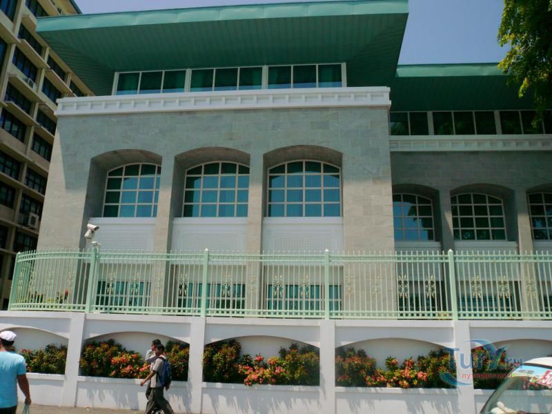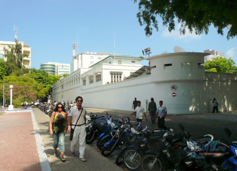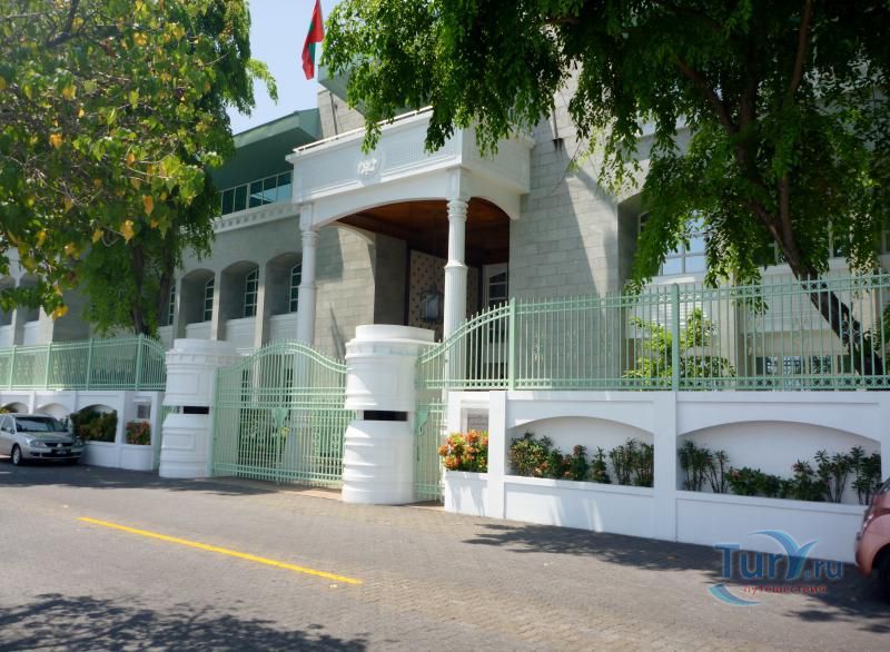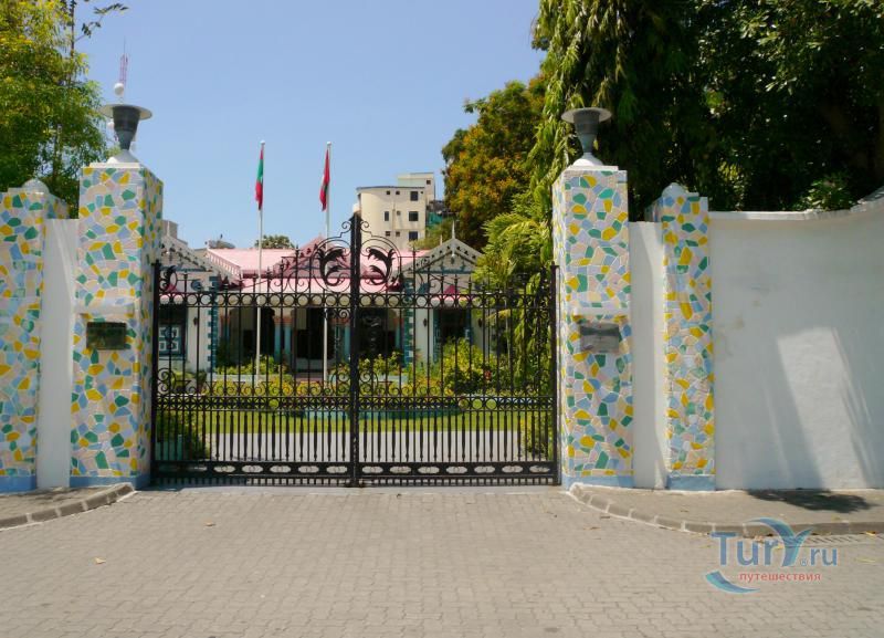 ДВОРЕЦ МУЛИАГЕ (MULEEAAGE). Дворец находится напротив мечети Хукуру. Сооружен в 1913г. по плану шри-ланкийского архитектора. Это сине-белое здание в колониальном стиле стоит посреди великолепного сада. Оно было построено султаном Шамсуддином III для сына. Так случилось, что султан вскоре умер, а его сын так никогда и не взошел на трон. В 1953 г., когда в стране был провозглашен республиканский строй, это здание стало резиденцией президента. В 1993г. дворец расширили, а в 1994г. президент Гаюм покинул дворец Мулиаге, переехав в свою новую резиденцию - дворец Темуге.