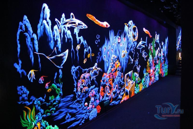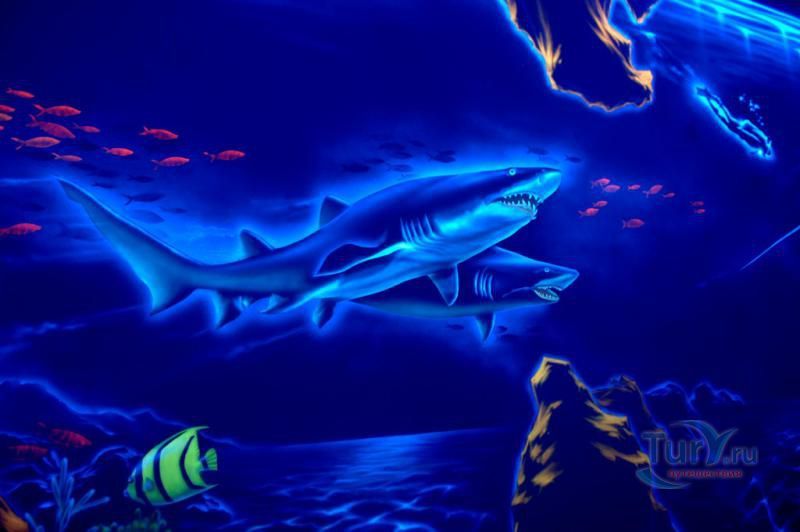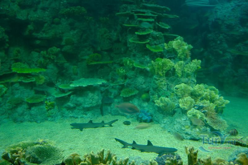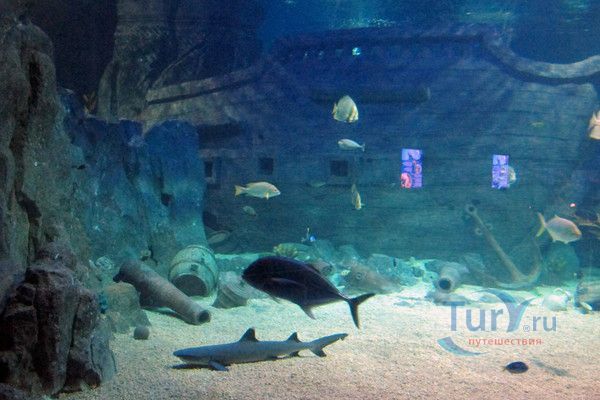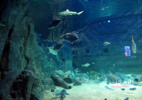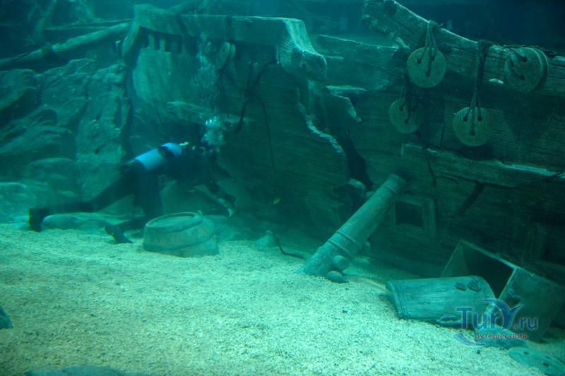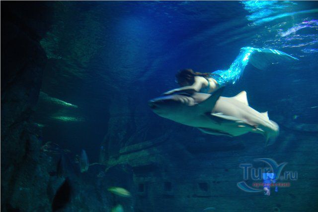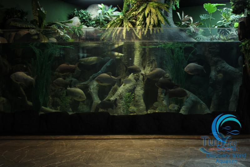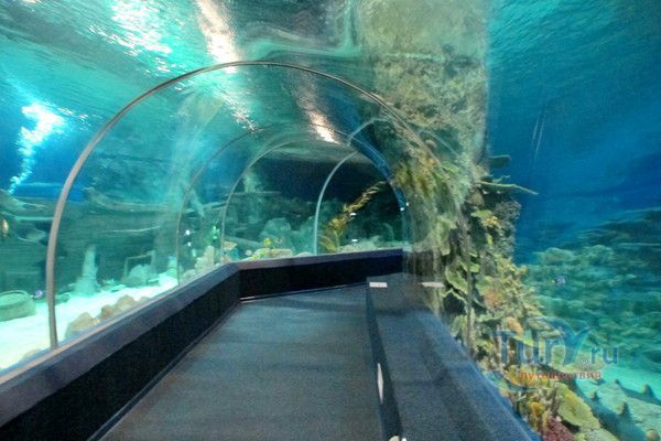 Самая впечатляющая и незабываемая часть экспозиции – прогулка внутри прозрачного акрилового туннеля под толщей воды, где живут своей безмятежной жизнью представители морских глубин, обитающих от Амазонки до Южной Америки! По ходу движения в туннеле Океанариума неожиданно возникает скалистый риф, следом грот с затонувшим кораблем, внутри которого плавают русалки. Просторы открытого моря и проплывающие вокруг обитатели морских глубин, особенно грозные акулы – навсегда оставляют неизгладимое впечатление.
