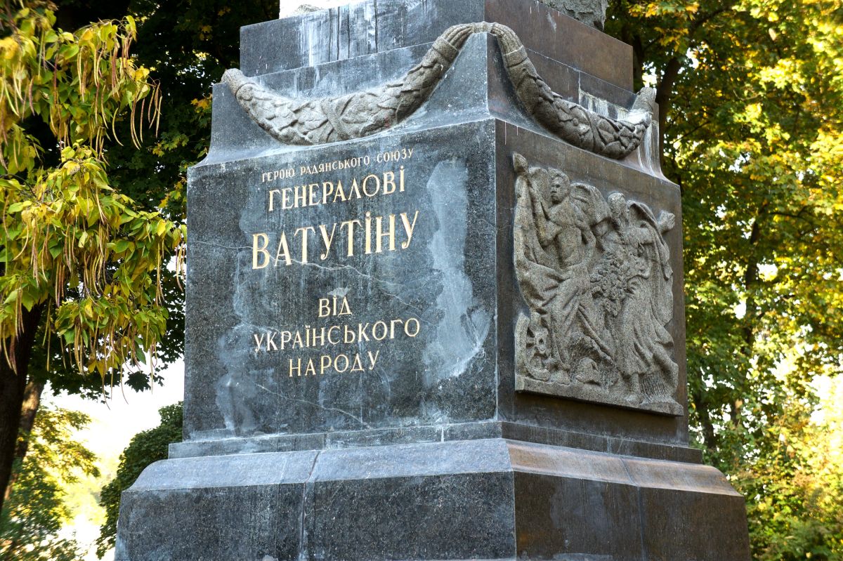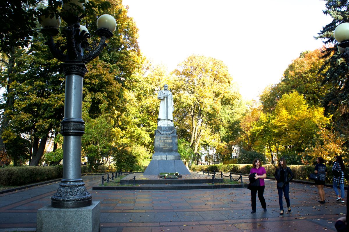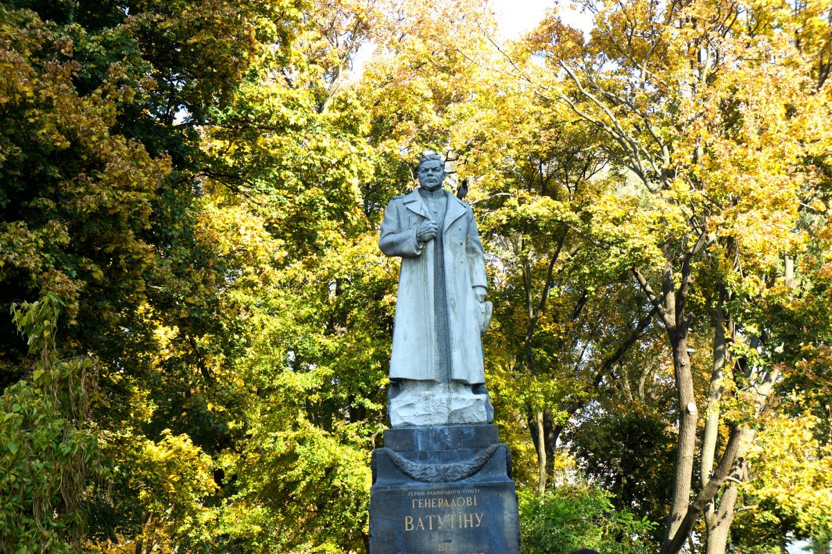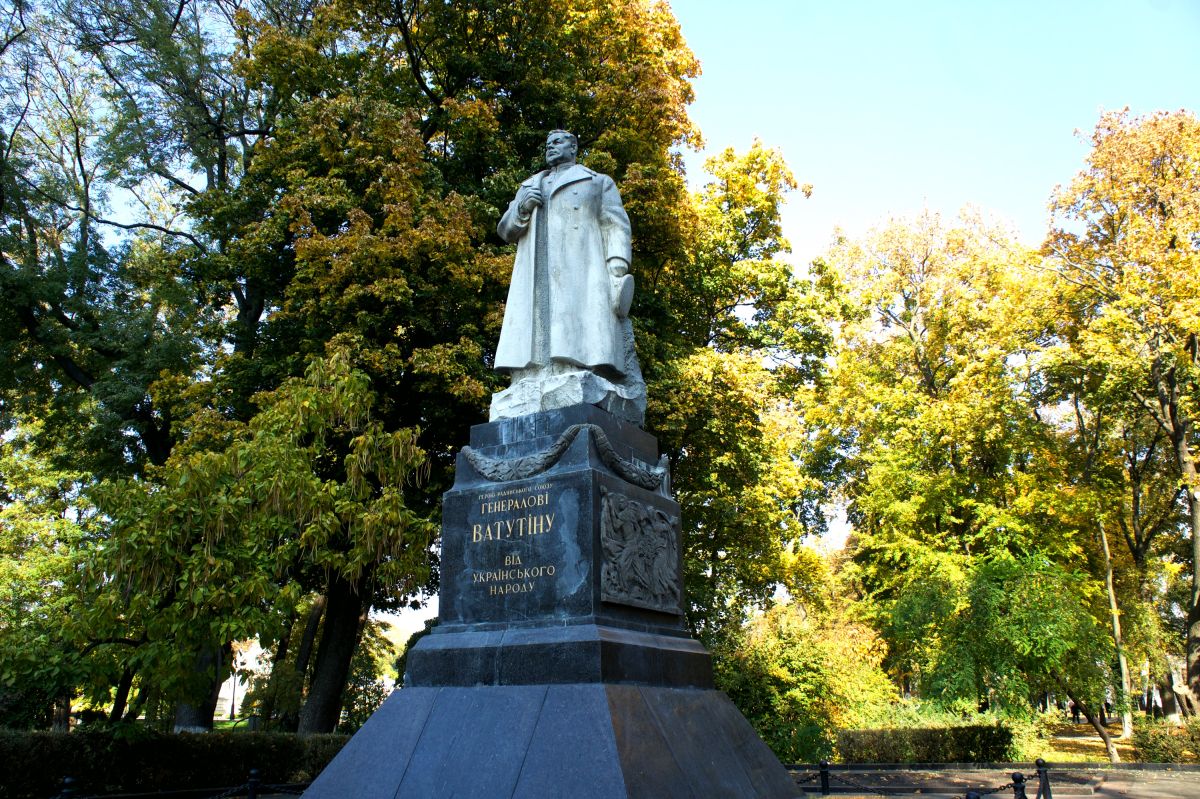 Памятник генералу Ватутину в Киеве был установлен в 1948 году в Мариинском парке над его могилой. Николай Фёдорович Ватутин в годы Великой Отечественной войны последовательно возглавлял войска Воронежского, Юго-Западного и 1-го Украинского фронтов до своей гибели в 1944 году. Именно ему принадлежала заслуга в освобождении города Киева от оккупации немецко-фашистскими войсками. После войны генералу Ватутину было посмертно присвоено звание Героя Советского Союза. Над могилой известного генерала установили памятник в виде его статуи, выполненной из серого гранита, установленный на постаменте из черного лабрадорита.