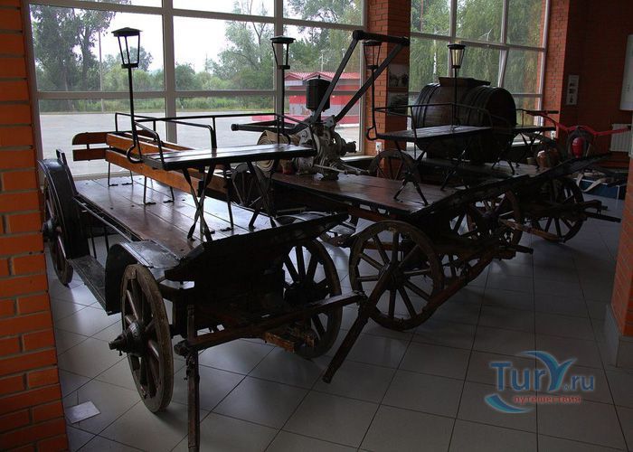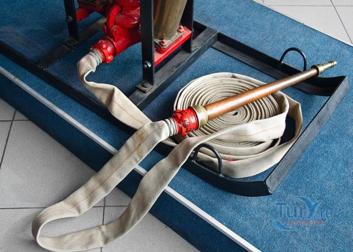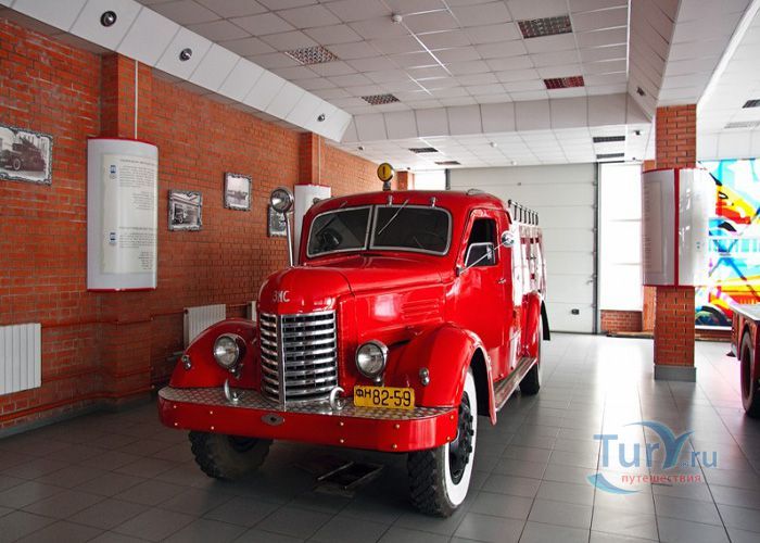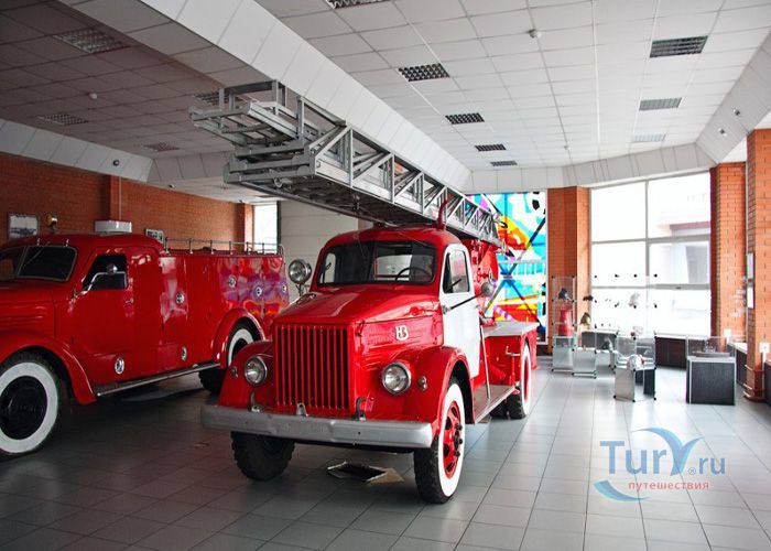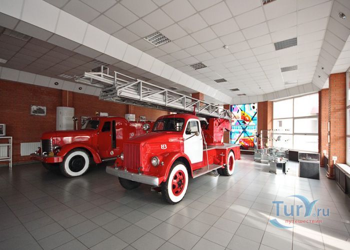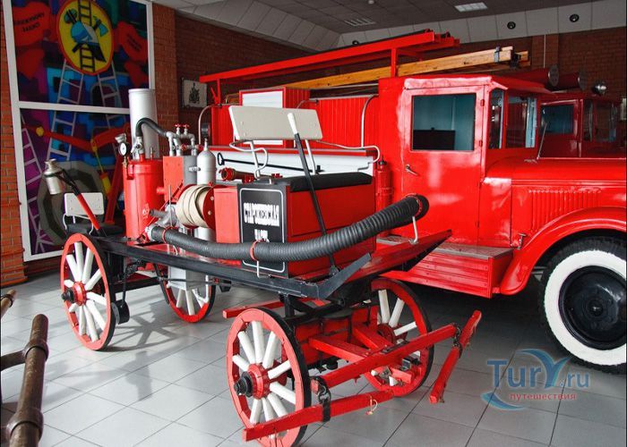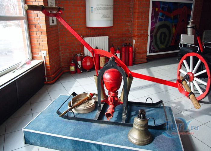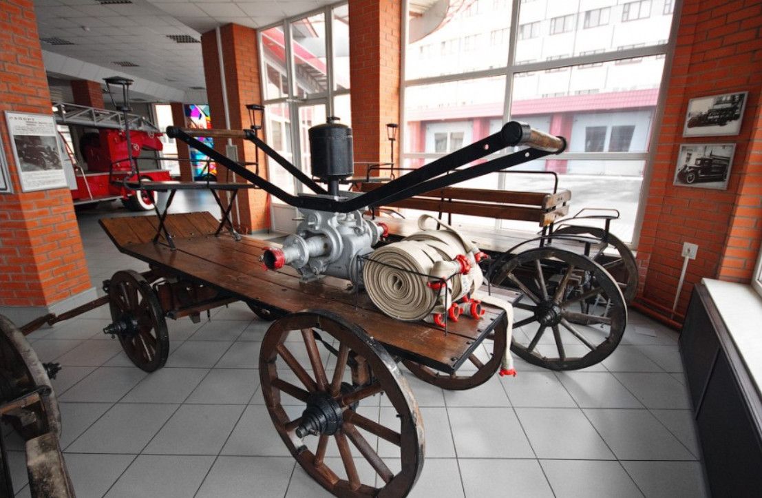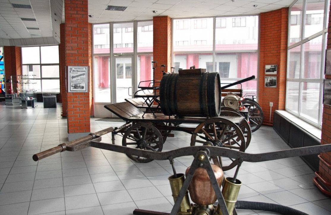 В экспозиции музея представлена целая коллекция пожарных инструментов, исторические документы и старинные фотографии, модели пожарного катера и машины, каски разных эпох. Среди пожарной техники есть уникальные экспонаты: повозки на конной тяге конца 19 века, паровой насос, первый пожарный автомобиль 1913 года, первая передвижная лестница.