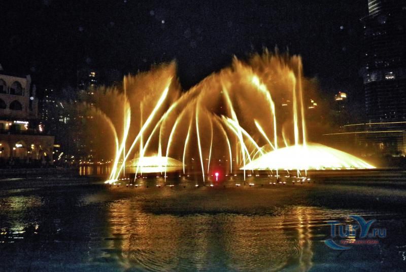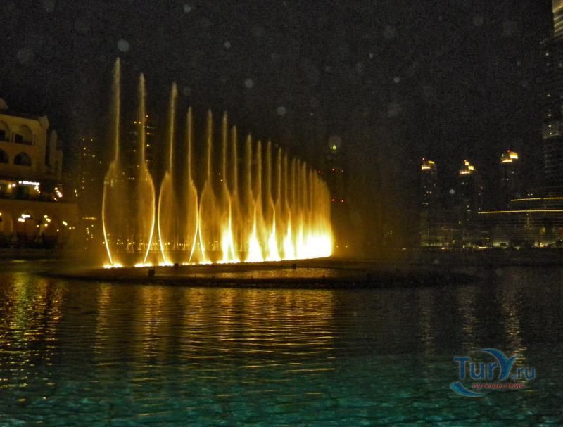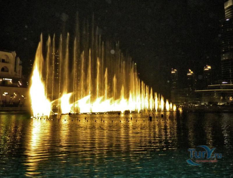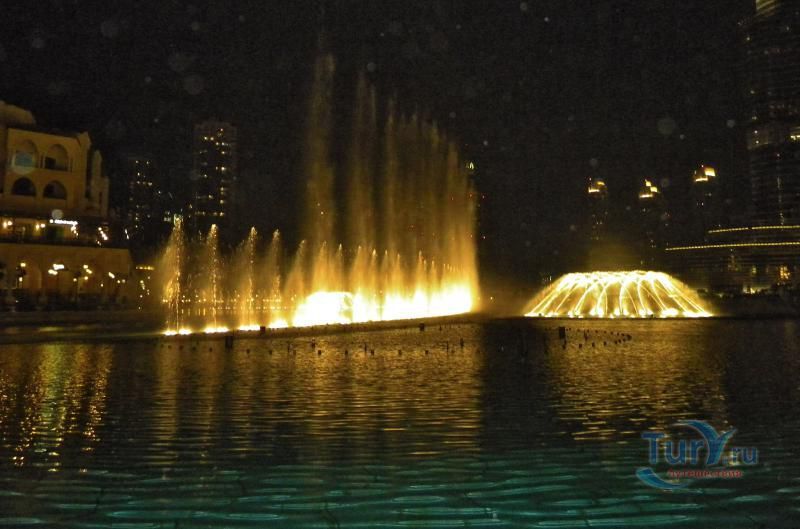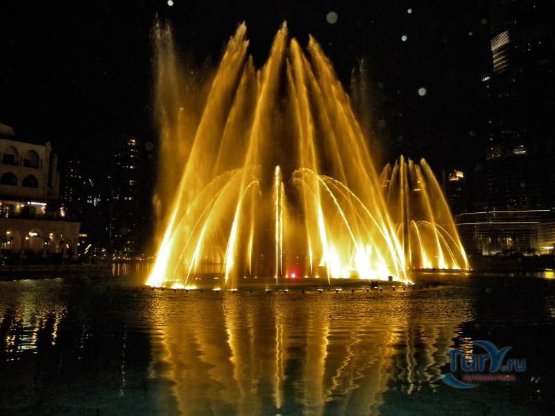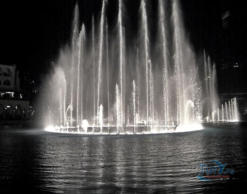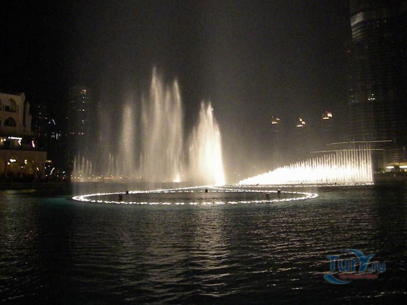 Фонтан мирового класса со встроенным световым и звуковым шоу в центре Дубая, в районе Downtown Burj Dubai - это архитектурный элемент города, который славится всемирным водноинженерным чудом и является одним из крупнейших и интереснейших городских аттракционов, который привлекает внимание десятков миллионов туристов ежегодно. Его длина составляет 275 метров (приблизительно два футбольных поля), что на 25% больше известного американского «поющего» фонтана Ballagio в Лас-Вегасе. Мощные, разбрызгивающие воду, сопла поднимают струю воды на 150 метров (высота 50-этажного здания). С помощью 6600 световых индикаторов и 50 цветных прожекторов создаются свыше тысячи вариантов световых представлений для зрителей. Подборка музыкального сопровождения для светового представления также весьма разнообразна – от классических до современных арабских и мировых музыкальных шедевров. Уникальный фонтан расположен рядом с Burj Dubai, самым высоким в мире зданием, и торговым и развлекательным центром Дубая – Dubai Mall. Дизайнером-архитектором уникального фонтанного чуда стала калифорнийская компания WET Design, приложившая свои силы и мастерство при строительстве известного американского «поющего» фонтана Bellagio. Проект дубайского фонтана разработан специалистами Turner Construction International.