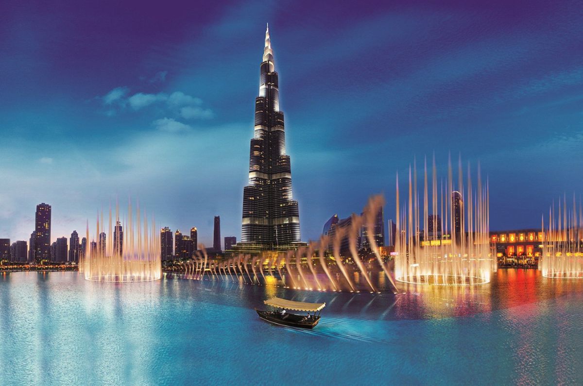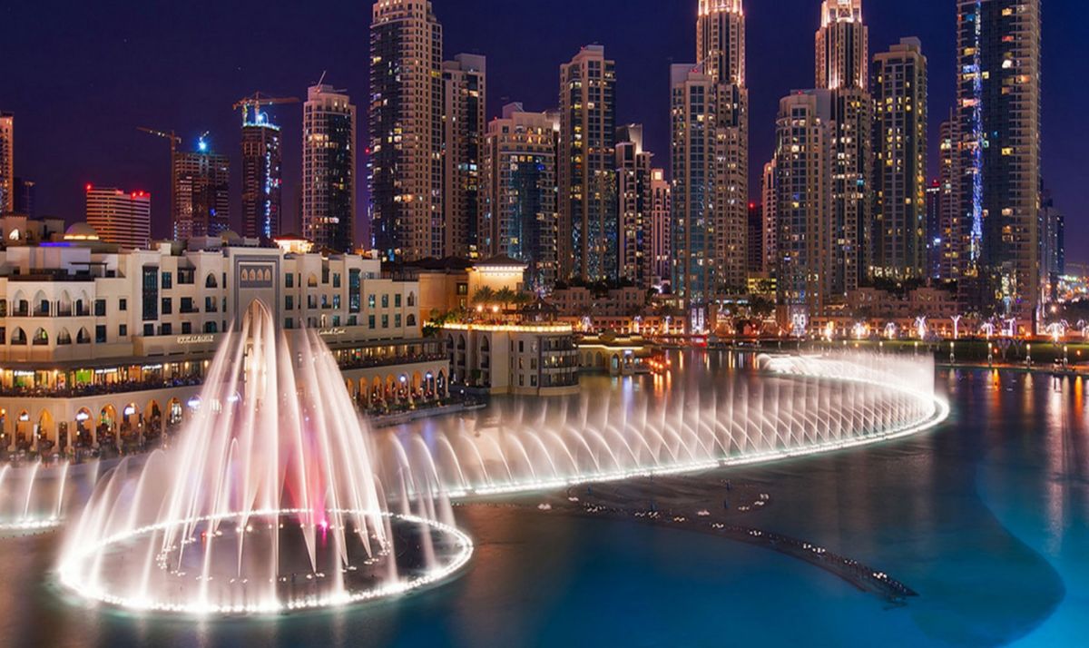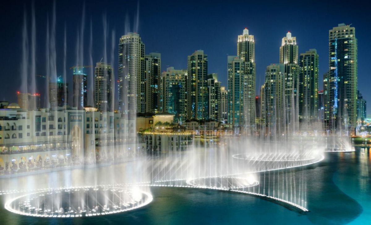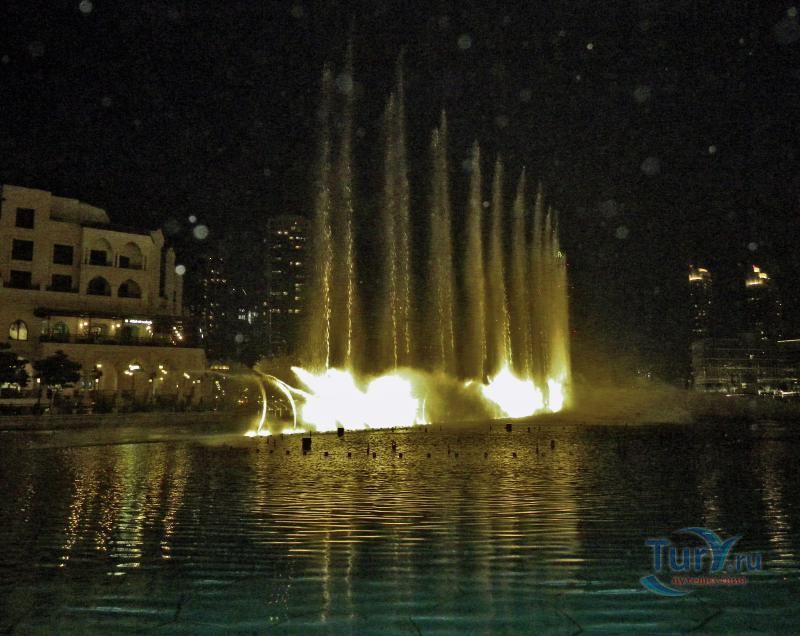 Фонтан мирового класса со встроенным световым и звуковым шоу в центре Дубая, в районе Downtown Burj Dubai - это архитектурный элемент города, который славится всемирным водноинженерным чудом и является одним из крупнейших и интереснейших городских аттракционов, который привлекает внимание десятков миллионов туристов ежегодно. Его длина составляет 275 метров (приблизительно два футбольных поля), что на 25% больше известного американского «поющего» фонтана Ballagio в Лас-Вегасе. Мощные, разбрызгивающие воду, сопла поднимают струю воды на 150 метров (высота 50-этажного здания). С помощью 6600 световых индикаторов и 50 цветных прожекторов создаются свыше тысячи вариантов световых представлений для зрителей. Подборка музыкального сопровождения для светового представления также весьма разнообразна – от классических до современных арабских и мировых музыкальных шедевров. Уникальный фонтан расположен рядом с Burj Dubai, самым высоким в мире зданием, и торговым и развлекательным центром Дубая – Dubai Mall. Дизайнером-архитектором уникального фонтанного чуда стала калифорнийская компания WET Design, приложившая свои силы и мастерство при строительстве известного американского «поющего» фонтана Bellagio. Проект дубайского фонтана разработан специалистами Turner Construction International.
