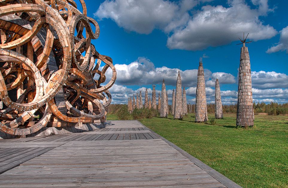 Деревня Никола-Ленивец находится на расстоянии 180 км от Москвы и является особо охраняемой природно-исторической территорией в составе Национального парка " Угра". С 2000 года деревня Никола-Ленивец стал форпостом современного искусства благодаря возведённым здесь ландшафтным объектам известных мастеров архитектуры, которые вросли в сельский пейзаж и всё ещё продолжают удивлять гостей и приезжих. Каждый год количество объектов возрастает. Ещё одна особенность этого «музея под открытым небом», состоит в том, что все «легендарные постройки» выполнены с использованием естественных природных материалов: сена, дров, снега, шишек, дерева, и в строительстве каждого из них принимали участие местные жители деревни Никола – Ленивец. Только здесь можно увидеть настоящий "дровник" высотой с пятиэтажный дом, старый сарай, в стенах которого просверлили 200 000 дырочек, теперь изнутри льется необыкновенный свет – будто в нём поселилось множество светлячков, крепость из шишек высотой более 5 метров. Обязательно подымитесь в действующий деревянный туалет, который возвышается над лесом. Ещё одно из творений - это «Деревянное Ухо», высотой более 7 метров. В него можно залезть и наслаждаться дивным закатом, а ещё оно собирает все звуки природы и дает возможность сосредоточиться на созерцании окружающей красоты. Сфотографируйтесь среди огромной стаи деревянных грачей, каждый из них размером с поросёнка, которые высадились на поле возле церкви. Поднимитесь в "Дом над лесом" - это избушка на деревьях, новое видение дачного домика художника-архитектора Анны Щетининой. На "поляне отдыха" вы обнаружите несколько десятков гамаков, плюхнитесь в них и забудете обо всех городских делах и проблемах. Запечатлейте грандиозную инсталляцию художника Николая Полисского "Орёл в огне" - железная птица стоит одиноко в поле, её размеры поражают, а грозный вид завораживает. Специально для вашей группы будет организована уникальная экскурсия по территории парка с посещением всех монументальных объектов. С подробным рассказом о каждом. На каждый объект можно подняться, потрогать его руками, сфотографироваться. А затем приглашаем Вас на вкусный пикник на свежем воздухе. Вы отведаете замечательную деревенскую кухню. Несколько деревенских семей готовят русские разносолы, соблюдая все старинные рецепты "щи по-деревенски", "огурцы и помидорчики из дубового бочонка", «квашеная капуста с лесной клюквой", «самогоночка на еловых шишках", "шашлычок из парного поросёнка" и многое другое.