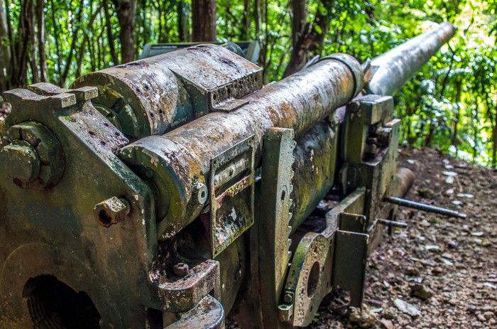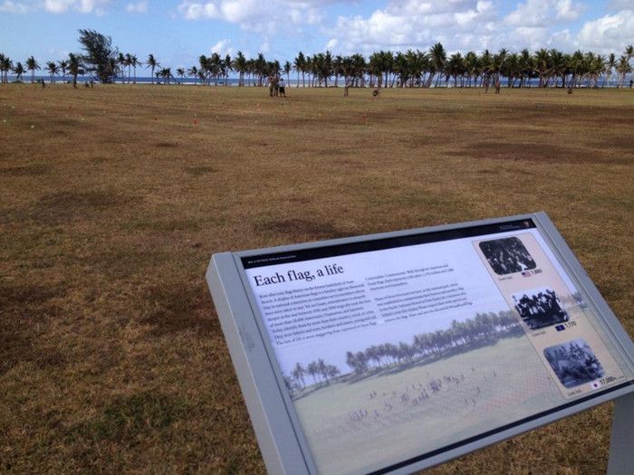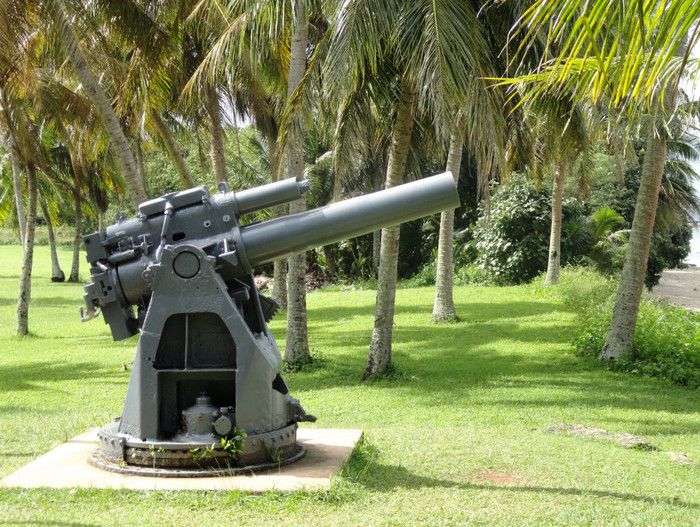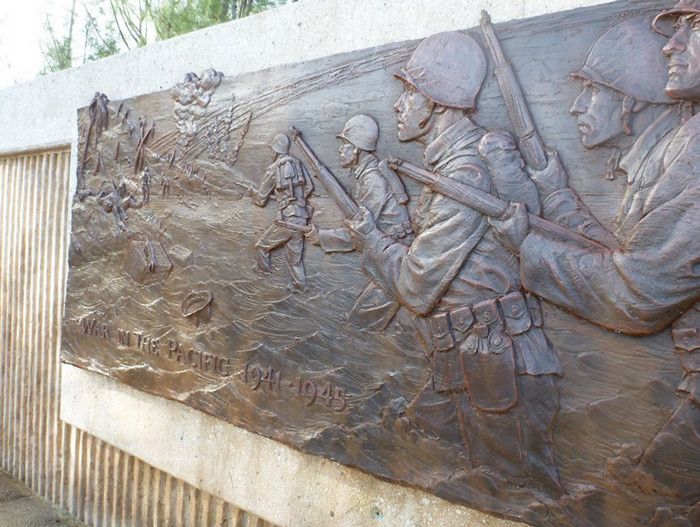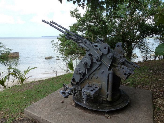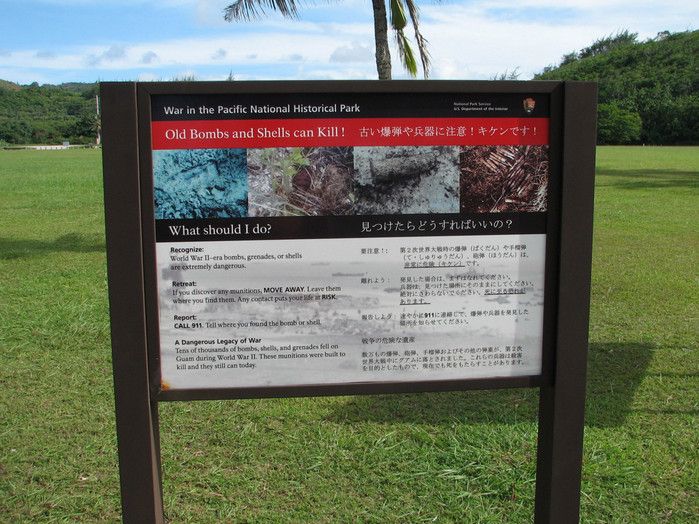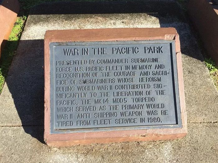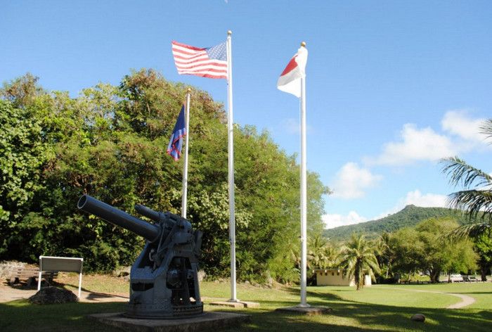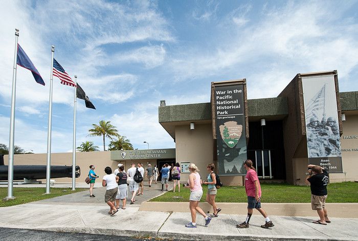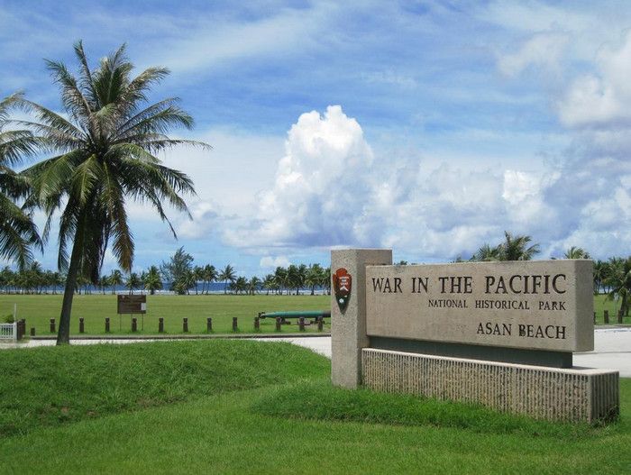 Национальный Исторический Парк Война на Тихом Океане был создан в 1978 году в память о жертвах среди американских солдат и местного населения острова во время кровавых сражений за Гуам в годы Второй мировой войны. С 1898 года Гуам находился под контролем США, во время Второй мировой войны остров был захвачен японцами - разбомбив 7 декабря 1941 года базу тихоокеанского флота военно-морских сил США Перл-Харбор, расположенную на острове Оаху, японцы атаковали Гуам. Небольшой американский гарнизон был полностью уничтожен высадившимся на остров японским десантом, а тысячи коренных жителей Гуама безжалостно убиты. Уже 10 декабря 1941 года остров Гуам перешёл под контроль Японии. В 1944 году началась Битва за Гуам (сражение на Тихоокеанском театре военных действий Второй мировой войны между подразделениями ВМС США и армией и флотом Японии). На начальном этапе операции остров подвергся мощнейшей бомбардировке со стороны американский авиации, 21 июля 1944 года началась высадка американского десанта на Гуам. Во время боевой операции американские войска несли большие потери - хорошо укреплённые огневые точки японцев буквально поливали артиллерийский огнём американский десант, а сильный прибой и рифы вокруг острова не позволяли американским судам близко подойти к берегу. Японские подразделения оказывали ожесточённое сопротивление, из-за чего продвижение американцев вглубь острова происходило с большим трудом - лишь 4 августа войскам США удалось прорвать линию укреплений японцев в центральной части Гуама, а 10 августа полностью освободить остров. Терпя сокрушительное поражение, солдаты японского гарнизона Гуама отказались капитулировать и были практически все уничтожены. Уцелевшие группки японских солдат продолжали скрываться на острове, надеясь на возвращение своей армии, - мировой сенсацией стало обнаружение на острове в 1972 году японского капрала Ёкои Сёити, с 1944 года скрывавшегося в непроходимых джунглях близ водопадов Талофофо и прожившего 28 лет в небольшой яме, вырытой им в земле. Героизму, мужеству и храбрости участников американской операции по освобождению острова Гуам и посвящён Национальный Исторический Парк Война на Тихом Океане. Территориально парк разбит на 7 участков, в которых проходили наиболее кровопролитные бои, - Асан Бич (Asan Beach), Асан Бэй Овервью (Asan Bay Overlook), Пити Ганс (Piti Guns), Апака-Пойнт (Apaca Point), Гаан-Пойнт (Ga'an Point), Плато Фонте (Fonte Plateau) и гора Алифан (Mt. Alifan). Здесь расположены уцелевшие японские железобетонные доты, бункеры, артиллерийские орудия и снаряды, а также пещеры и туннели в скалах, которые японцы использовали в качестве своих боевых позиций. На территории парка установлены памятники и построены мемориалы, так, на вершине холма Асан Бэй Овервью находится смотровая площадка с Мемориальной стеной, на которой выбиты имена 1880 военнослужащих США, погибших в 1941 году во время нападения японцев на Гуам, 1170 американских солдат, павших во время освобождения острова в 1944 году, и 14720 местных жителей (в основном - индейцев чаморро), убитых с 1941 года по 1944 год. Есть в парке и Кладбище служебных собак морской пехоты США, погибших в боях за Гуам, - при освобождении острова погибли 25 собак, использовавшихся в качестве дозорных, курьеров и при поиске мин. В центре посетителей T. Stell Newman Visitor Center открыт музей, посвящённый Битве за Гуам, 
