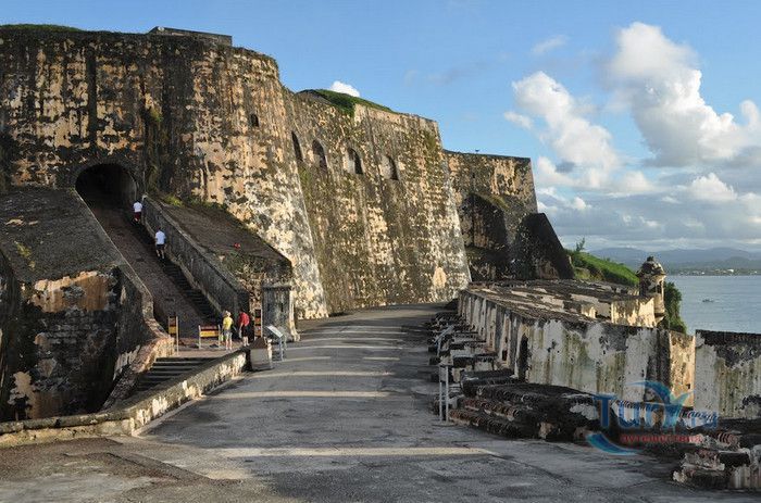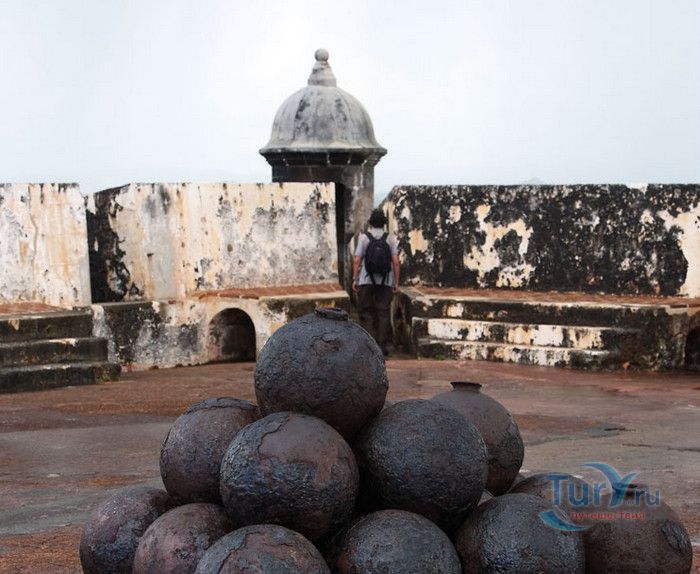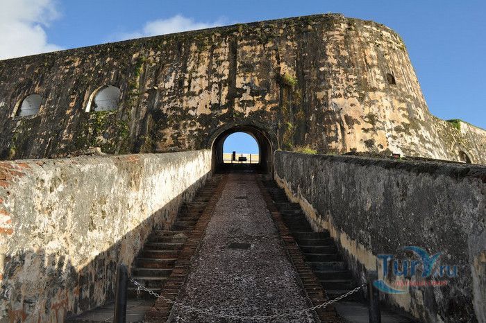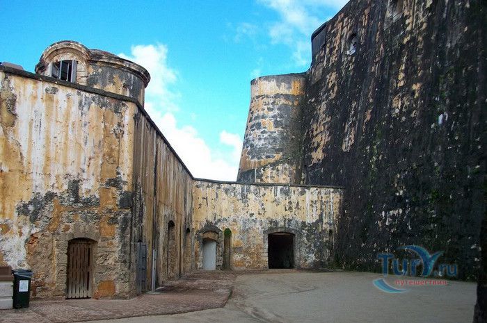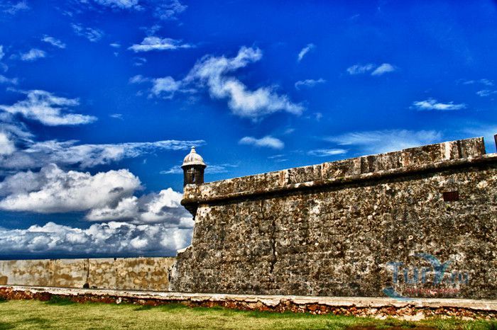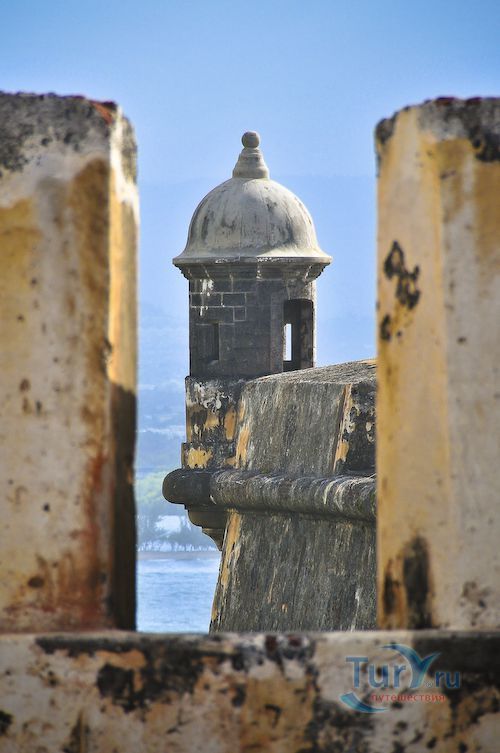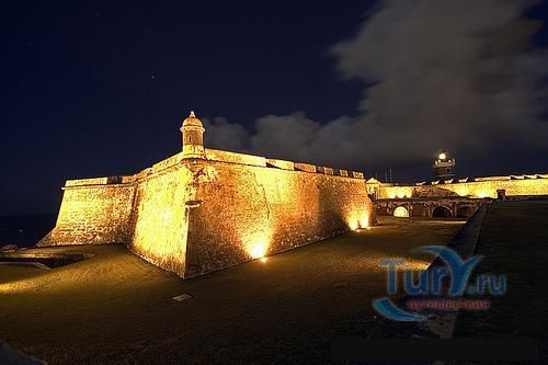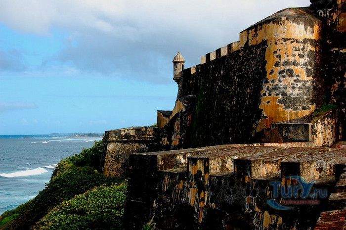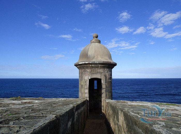 Кастильо-де-Сан-Фелипе дель Морро (Эль Морро) - первое сооружение оборонного типа в Пуэрто-Рико, строительство которого было начато по приказу испанского короля Карла V в 1593 году. Форт был построен на скалистом мысе, у входа в гавань Сан-Хуан, и служил для защиты города и всего Пуэрто-Рико от нападений со стороны моря. Изначально Эль Морро был небольшим фортом, гарнизон которого насчитывал всего несколько солдат и имел на вооружении 2 пушки. Вплоть до 1787 года крепость неоднократно перестраивалась и расширялась. В результате модификаций форт Эль Морро стал шестиуровневым фортификационным сооружением с мощными стенами высотой 44 метра и толщиной 5,5 метров. В крепости были построены маяк, часовня, казармы, подземелья, склады, пушечные батареи и разветвлённая система подземных тоннелей. Цитадель Кастильо-де-Сан-Фелипе дель Морро пережила не одно нападение как со стороны моря, так и со стороны суши. В 1595 году Эль Морро тщетно атаковал английский пират Фрэнсис Дрейк, в 1598 году гарнизон крепости в течение 10 дней удерживал осаду английского авантюриста и корсара Джорджа Клиффорда, третьего графа Камберленд. Лишь после того, как в форте закончились еда и вода, защитники Эль Морро капитулировали. Англичане не смогли долго удерживать крепость, после её возвращения под власть испанцев, цитадель была значительно укреплена. В 1625 году голландские корсары напали на Сан-Хуан, им удалось захватить город и со стороны суши подойти к стенам Эль Морро, однако, взять крепость им так не удалось. Это нападение заставила испанцев ещё более укрепить город, в 1634-1765 годах были построены мощные городские оборонительные стены вокруг всего Сан-Хуана, крепость Эль Морро в 1765 году была расширена и модифицирована. В 1797 году флотилия Великобритании пыталась снова осадить город, но Сан-Хуан остался неприступен. В 1898 году началась испано-американская война, в результате которой Испания потеряла все свои колонии в Карибском море. Эль-Морро был обстрелян из пушек американских кораблей, и через несколько часов после начала осады в крепости господствовали американцы. Эль-Морро превратился в американский форт Брук, во время Первой и Второй мировых войн он служил форпостом американских ВМС. В 1961 году Армия США покинула Пуэрто-Рико, Кастильо-де-Сан-Фелипе дель Морро стал частью Национального исторического музея, в 1983 году крепость внесена в список Всемирного наследия ЮНЕСКО. Сегодня над Эль Морро развеваются флаги Пуэрто-Рико, США и Бургундский крест, который использовался испанцами в качестве боевого стяга в 1506-1785 годах. Посетители Эль Морро могут совершить экскурсию по крепости, побывать в подземельях, увидеть пушечные батареи, самая мощная из которых - батарея Святой Барбары, и заглянуть внутрь караульных будок "гаритас", ставшими национальным символом Пуэрто-Рико.