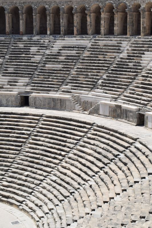 Согласно греческой легенде, город был основан аргивянскими колонистами, которые, под лидерством героя Мопсоса, прибыли в Памфилию после троянской войны. Древний амфитеатр в Аспендосе считается одним из наиболее сохранившихся в Турции памятников архитектуры и привлекает к себе множество туристов уже сотни лет. Не смотря на свой почетный возраст он не утратил не только своей величественности и красоты, но и своего предназначения, ведь действия там проводятся до сих пор.