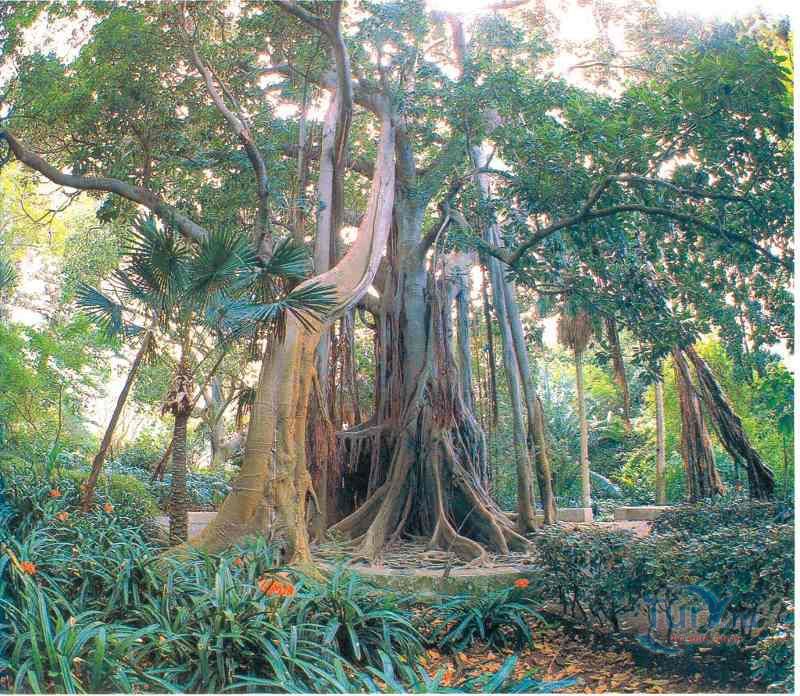 Гордость ботанического сада Тенерифе — огромное каучуковое дерево, с его ветвей спускаются вегетативные корни, благодаря чему его ширина составляет много квадратных метров. Возраст этого дерева составляет более 200 лет, оно было доставлено на Тенерифе из Бразилии.