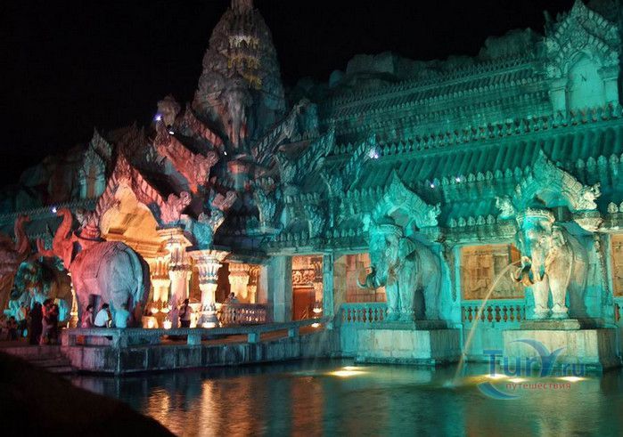 Огромный парк, где разместился ультрасовременный развлекательный комплекс. В парке Вы увидите грандиозное шоу слонов, музыкальные фонтаны со спецэффектами, национальные танцы, бокс-шоу, иллюзион-шоу. Каждый вечер на сцене театра-дворца происходит грандиозное шоу. Беспрецедентный по своим масштабам спектакль включает пиротехнические и компьютерные эффекты, воздушный балет, акробатику и цирк слонов. Каждое представление длится 1 час 20 минут. В них принимают участие 400 человек, 50 слонов, 10 тигров, 200 птиц и 4 тайских буйвола. Красочное действо гарантирует незабываемые впечатления для зрителя любого возраста.