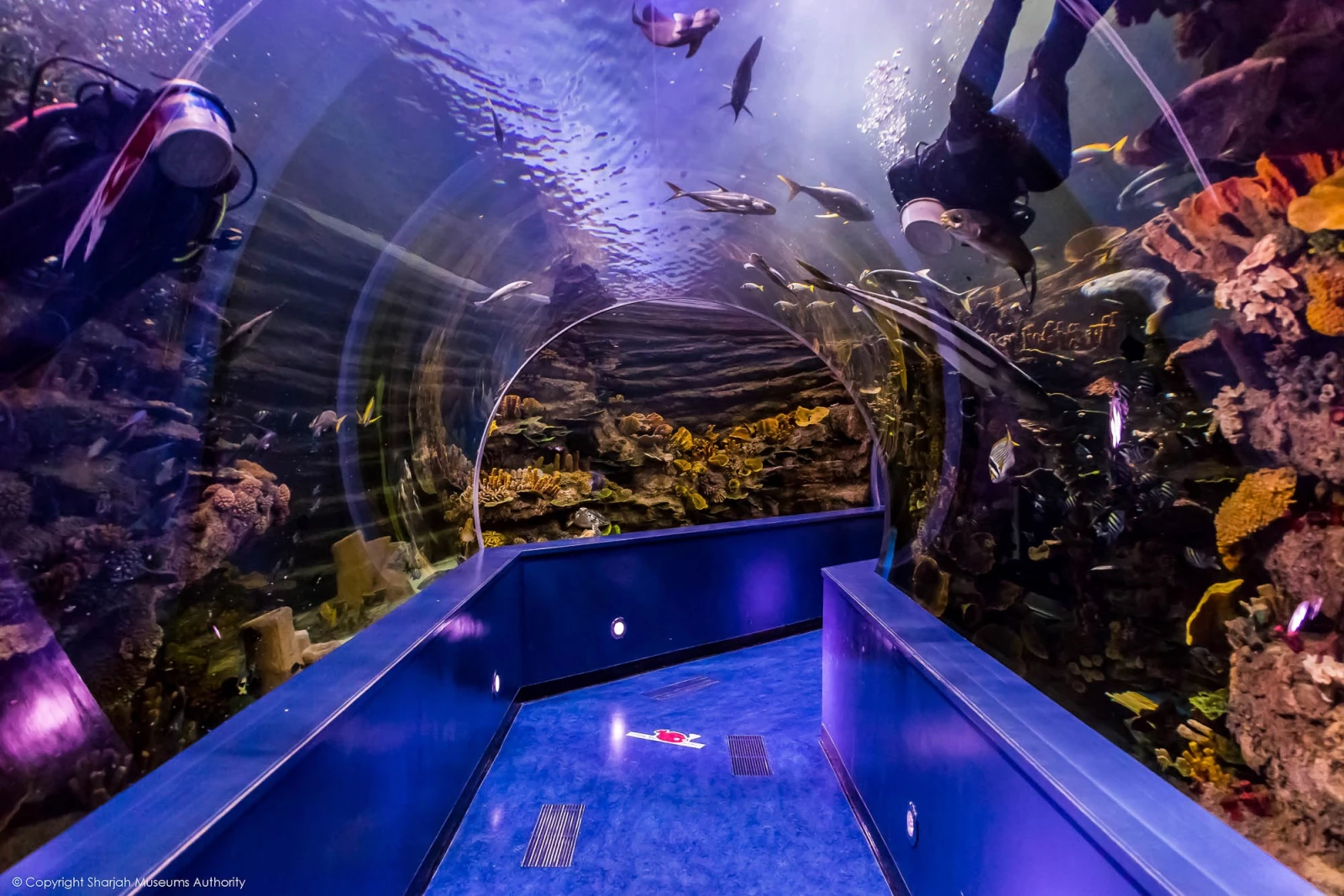 Аквариум Шарджи занимает два этажа и содержит более 20 больших аквариумов, в которых представлены разнообразные морские виды, от мелких рифовых рыб до крупных акул и скатов. Посетители могут наблюдать за жизнью коралловых рифов, мангровых зарослей и глубоководных обитателей моря, узнавая об их естественной среде обитания и важности сохранения морских экосистем.