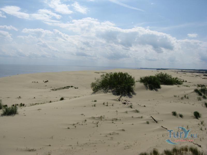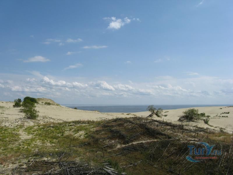 На 46 км косы в районе самой высокой дюнной гряды Куршской косы проложен маршрут «Озеро Лебедь» протяженностью 4 км. Здесь самые высокие движущиеся дюны. Завораживает панорама видовой площадки находящейся на высоте 55 м над уровнем моря на одном из эоловых бугров на вершине дюны Оленья буда: широкая морская гладь, массивы открытых песков, многоплановые виды озера Лебедь и лугов с перелесками. Благоприятные климатические условия позволяют отдыхать на Куршской косе в период с мая по ноябрь. Песчаные пляжи есть и в пресноводном заливе и в солёном Балтийском море. Но вода даже в июле редко повышается больше 19 град.