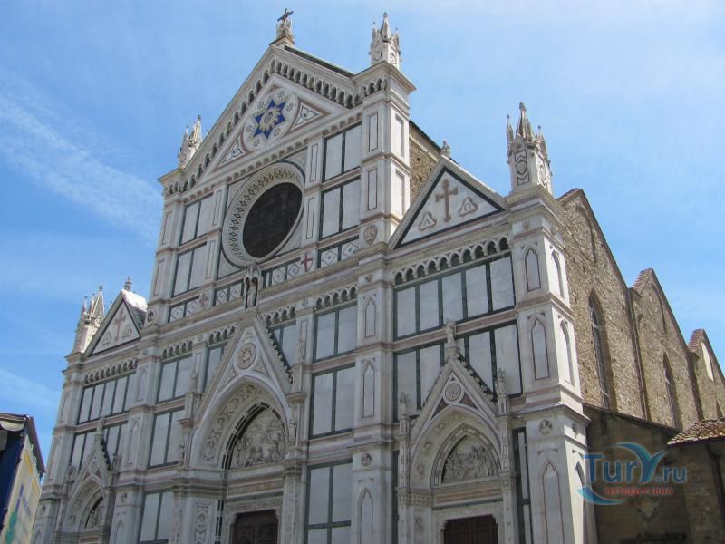 Создание базилики Санта Кроче, самой большой церкви Флоренции, было осуществлено гениальным мастером Арнольфо ди Камбио. Работы шли до второй половины четырнадцатого века, хотя освящение церкви состоялось лишь в середине пятнадцатого века папой римским Евгением IV. Фасад и три его портала были закончены проекту Н. Матаса в девятнадцатом веке.