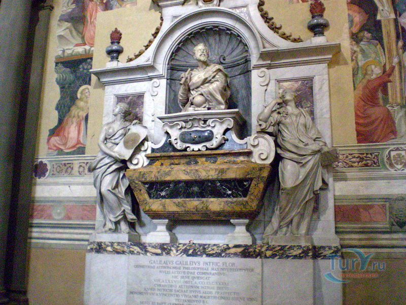 Внутри церкви также расположены гробницы более 300 великих флорентийцев, среди которых Микеланджело, Макиавелли, Данте, Лоренцо Бартолини, Галилео Галилей.