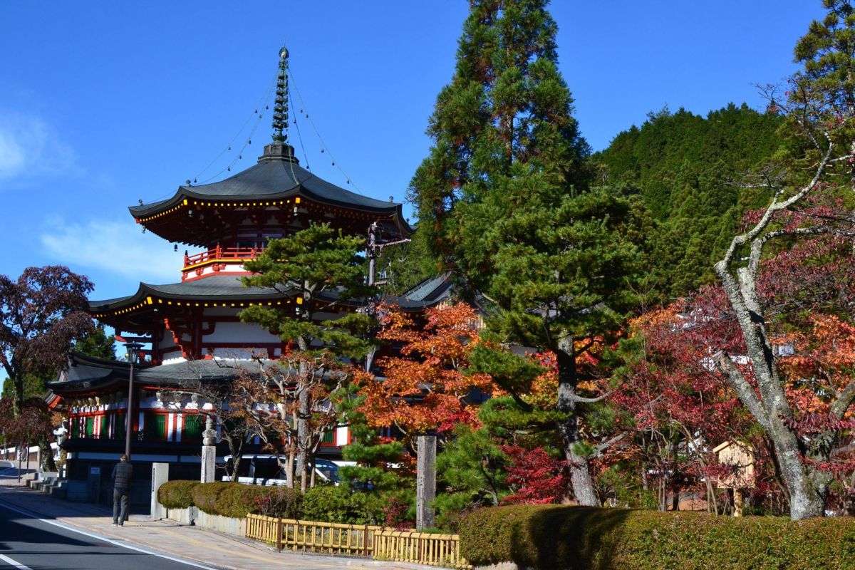 Великолепные комплекс Дандзёгаран, включает самое старое из всех находящихся на горе зданий, Фудодо (зал Фудо) построен в 1197 году, и Компон дайто, великолепную ало-белую пагоду. Перестроенная в 1937 году, эта пагода считается символом горы Коя.