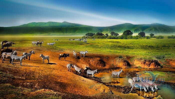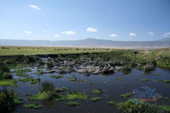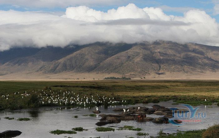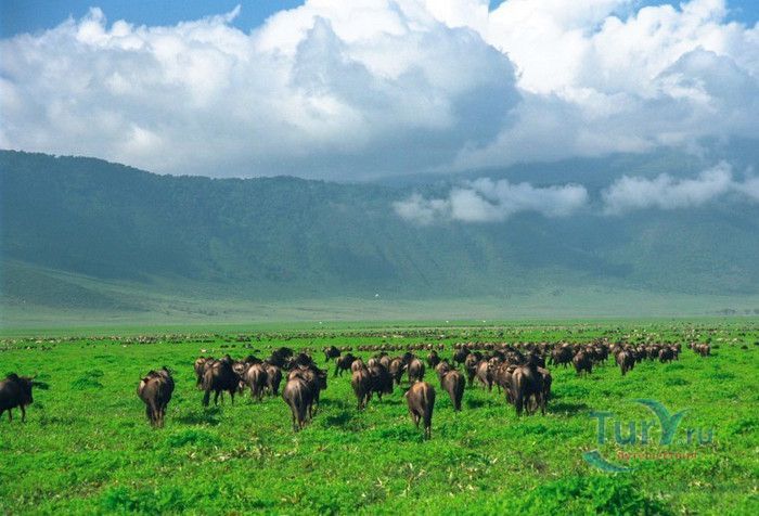 Кратер Нгоронгоро образовался 2,5 миллиона лет назад и считается относительно молодым в Африке. Раньше это был огромный вулкан. После самого большого извержения его верхушка обрушилась и образовала кальдеру. Но вулканическая активность не прекратилась и продолжались маленькие извержения в результате которых на дне кратера возникли горные пики, которые можно увидеть и по сей день. Нгоронгоро был превращен в заповедник в 1959 году. Кратер и прилегающие к нему районы занимают площадь 8288 кв. км. В 1978 году этот заповедник за его красоту и значительность был объявлен мировым природным наследием. Кратер в диаметре от 16 до 19 км имеет общую площадь 265 кв.км. Края кратера находятся на высоте 2286 м над уровнем моря, его дно на 610 метров ниже. О Нгоронгоро часто говорят “рай на Земле” или “эдемский сад”. Очевидно поэтому сюда каждый год приезжают тысячи туристов со всех концов света.