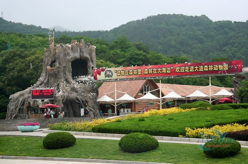 Даляньский лесной зоопарк считается одной из изюминок Даляня. Зоопарк построен в 1997 году. Он расположен на вершине горы Байюань, с которой открывается великолепный вид на морское побережье, уютные бухты, ухоженные даляньские песчаные пляжи и территорию зоопарка. Зоопарк занимает площадь 7,2 кв. км, которая разделена на две части, соединённые между собой канатной дорогой. В зоопарке собраны более 3000 животных и 300 видов птиц, привезённых сюда со всего мира, многие из которых занесены в Красную книгу. На первой половине территории зоопарка находятся несколько огороженных секторов с павильонами и вольерами с животными и Сафари-зоопарк, в зоне которого животные прогуливаются на воле. В первом секторе представлены тигры и львы, два тигра редкой белой окраски, привезённые из Германии и Соединённых Штатов Америки. Далее в зоопарке представлена территория травоядных животных. Среди них обитают жирафы, зебры, носороги, лоси, верблюды, олени, лемуры, тюлени, страусы и изящные розовые фламинго. В следующий сектор вошли обаятельные белые и бурые медведи, самые известные и любимые животные Китая - большие панды, редкие породы бамбуковых медведей, малая красная панда, которая встречается только на территории Китая. Отдельный сектор отведён слонам Азии, которые принимают участие в шоу слонов, причём не только взрослые слоны, но также их детки. Туристам предлагают прокатиться на обученных слонах. В секторе обезьян можно встретить чёрных орангутангов, золотых обезьян, гиббонов, шимпанзе, бабуинов, беличьих обезьян из рода широконосых обезьян. Также в лесном зоопарке представлено множество рептилий. Увидеть это животное царство можно, прокатившись в кабинке подвесной канатной дороги, которая соединяется со второй половиной Даляньского лесного зоопарка, на территории которой расположен Ботанический сад. Купол Ботанического сада хорошо виден сверху. Здесь представлена очень богатая коллекция разнообразных растений из самых разных уголков земли. В оранжереях Ботанического сада создана атмосфера тропиков с длинными причудливыми лианами, зарослями изумрудной зелени, красивыми водопадами, живописными озёрами и ручейками. Повсюду чувствуется пьянящий аромат диких цветов. Даляньский лесной зоопарк считается одним из лучших зоопарков в Китае и одним из самых больших в мире.