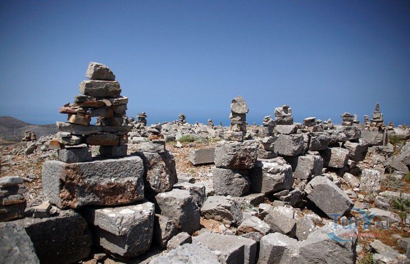 Развалины храма Зевса находятся на самой высокой горе острова Родос. Древние греки считали такие высоты пристанищем богов, точнее их верховного бога - Зевса, и возводили на вершинах храмы и алтари. Согласно мифу о Катрее и Главке, храм был построен критянином Алфеменом, сыном царя Крита Катрея. В легенде сказано, что у сына Миноса - Катрея было 4 детей: дочери Айропа, Климена и Апемосина и сын Алфемен. Однажды оракул предсказал Катрею, что он погибнет от руки одного из своих детей. Катрей спрятал предсказателя от людей, но Алфемен узнал тайну. И не желая быть виновником смерти отца, вместе с Апемосиной перехал на остров Родос (в Атабирию), в место, которое он позже называет Критиниа. Самую высокую гору называет Атабирион и строит там алтарь и храм, посвященный Зевсу Атабириону. По немногочисленным заметкам известно, что здесь стояли бронзовые фигуры быков (бык - одно из основных олицетворений Зевса), которые при приближении опасности начинали реветь.