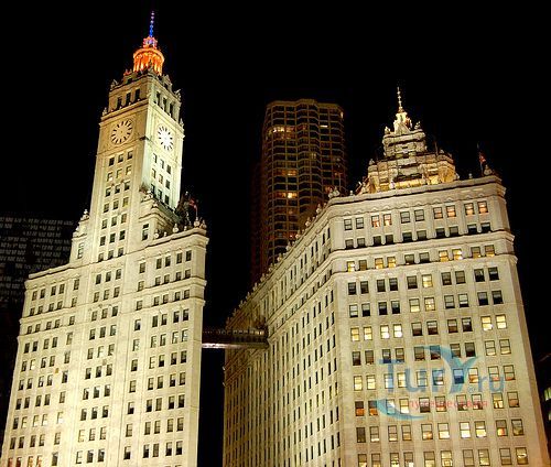 Блестящее белое здание Ригли является одной из самых знаменитых офисных башен Соединенных Штатов. Здание находится на Мичиган авеню, в самой южной точке Великолепной Мили. Ригли Билдинг состоит из двух башен, соединенных открытым тротуаром на улице и двумя закрытыми переходами.