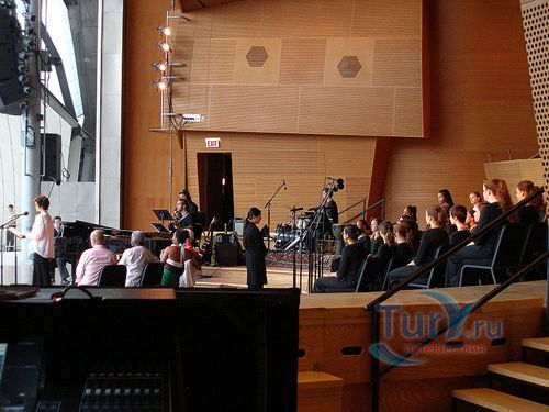 Эстрада спроектирована таким образом, что звук одинаково слышен любому из слушателей, вне зависимости от того, где он сидит. Кроме того, имитируется акустика закрытого концертного зала. Это первая в своем роде в стране эстрада с такими инженерными изысками.