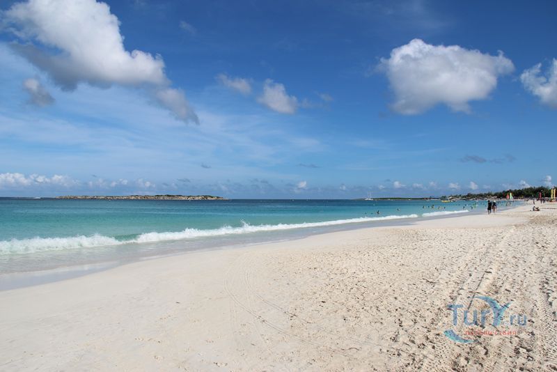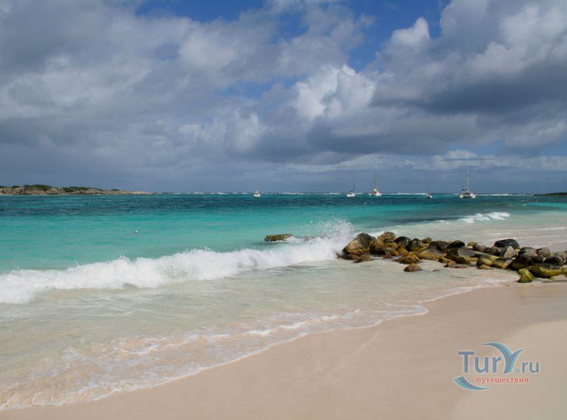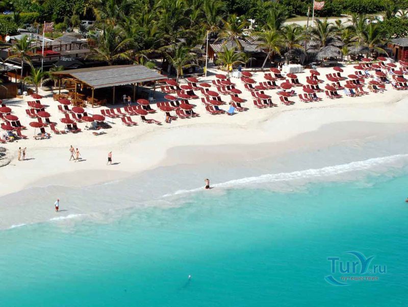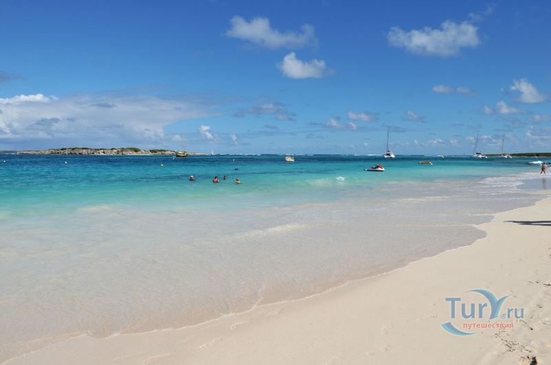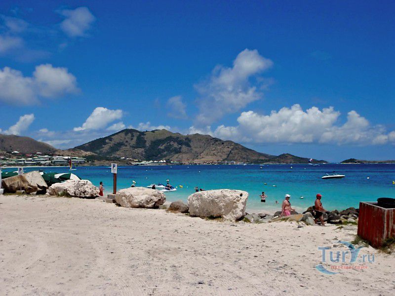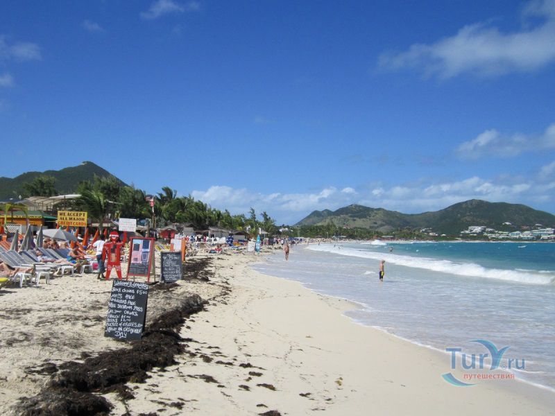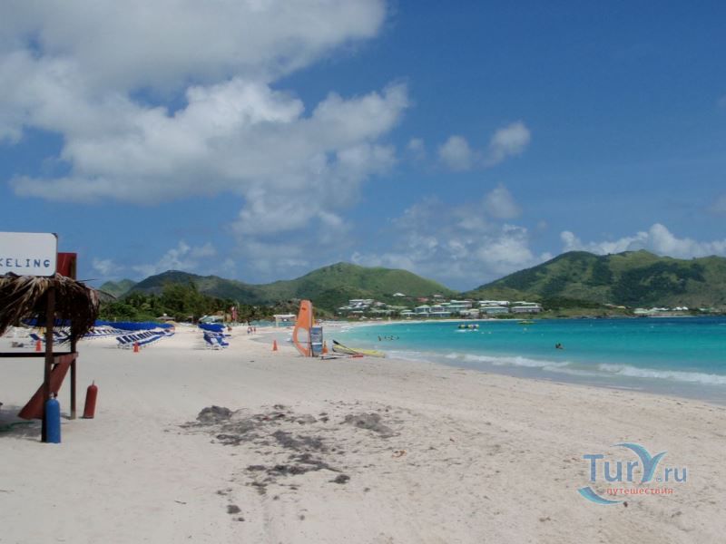 Ориент Бэй, белый песчаный пляж 2 мили длиной защищен от атлантических волн рифом, и вход в море очень пологий. Область была признана морским заповедником, так что снорклинг здесь просто невероятен. Также отличный снорклинг в соседнем Кай Верте (Зеленый Ключ), или на одном из маленьких красивых островов, усеивающих побережье, таких как Тинтамарре и Остров Пинель. Ориент Бич - наиболее развитый, самый популярный и самый занятый пляж на острове, вероятно самый известный пляж во всем Карибском море. Берег известен больше своей естественной красотой и считается самым раскрепощенным местом на острове, где купальники - не обязательны. Главная привлекательность Ориент Бэй - конечно обнаженный пляж и известный клуб Ориент - единственный нудистский курорт на острове.