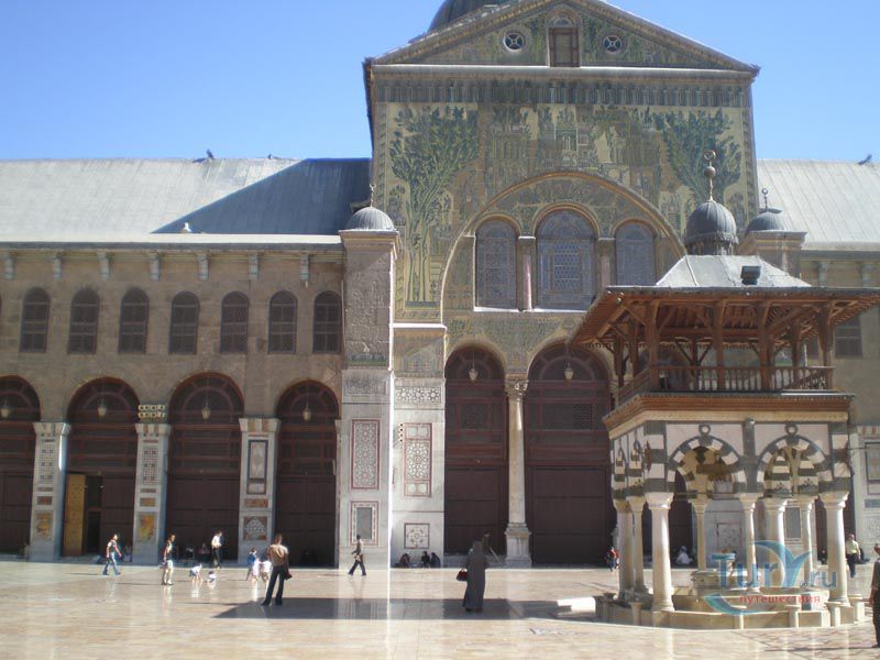 В Старом городе находится святыня Дамаска — мечеть Омейядов. Она была воздвигнута в VIII в. на месте византийской церкви Иоанна Крестителя, которую построили на фундаменте храма Юпитера. В первые века ислама в ней вместе молились христиане и мусульмане. В мечети находится гробница Иоанна Крестителя, в которой, по преданию, хранится его голова. Гробница Иоанна Крестителя уважаема христианами и мусульманами, ее надгробие — шедевр восточного искусства. Лучшим украшением мечети Омейядов считаются мозаики, исполненные, по преданию, художниками Константинополя. В течение столетий они были скрыты под слоем штукатурки и лишь в 1927 г. отреставрированы и открыты для обозрения. Великолепная мозаика, украшающая пол и стены мечети, ряды огромных черных колонн, богатая отделка гробниц, многочисленные золотые украшения и лампады, разноцветные стекла окон составляют интерьер мечети. В ней могут молиться одновременно до 6 тыс. верующих, а по праздникам здесь собирается до 13 тыс. человек.