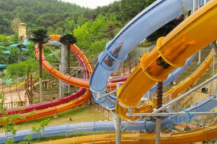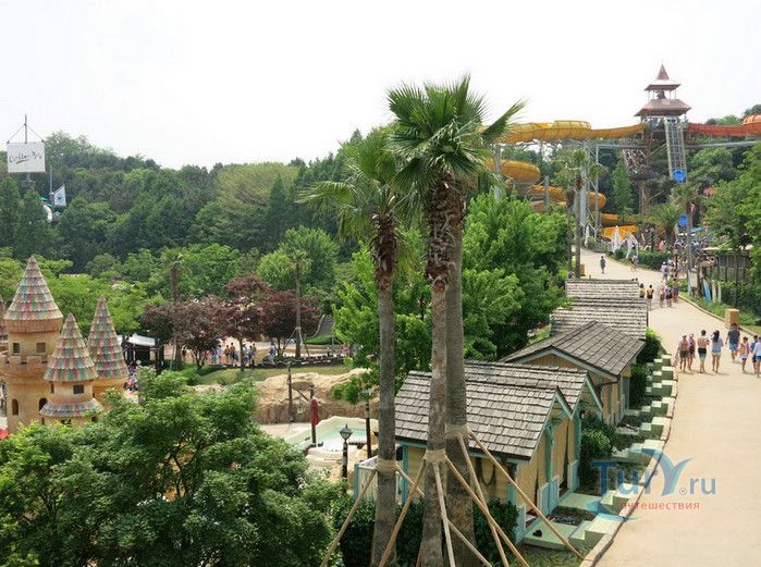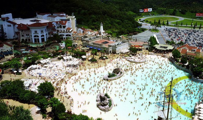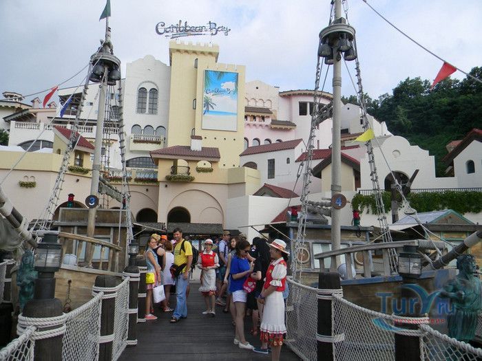 Аквапарк Карибиан Бэй - самый большой парк водных развлечений в Азии и один из крупнейших в мире, расположен в Южной Корее, в городе Йонъин, в часе езды от Сеула. Caribbean Bay был открыт в 1996 году, является частью парка развлечений Эверлэнд. Парк водных аттракционов воссоздаёт атмосферу Карибских островов, в оформлении его территории использована пиратская тематика. Аквапарк может одновременно принять 20000 посетителей, к услугам которых пять тематических зон - Водный центр, Морская волна, залив Презентация, Крепость и Дикая река. Caribbean Bay располагает крытыми бассейнами, горячими ваннами, открытыми бассейнами, водными горками и множеством аттракционов. Одной из главных достопримечательностей парка является бассейн с огромными искусственными волнами, высота которых достигает почти 2,5 метров. В бассейн без спасательного жилета не пускают, без жилета можно находиться лишь на мелководье, до жёлтой черты, нарисованной на дне бассейна. В 2011 году, в честь 15-летия со дня открытия аквапарка, был введён в эксплуатацию новый аттракцион, который сразу полюбился любителям экстрима - водные горки Aqua Loop высотой 18 метров. Отважные посетители поднимаются на самый верх и попадают в кабинку, в которой на счёт 3-2-1 из под ног убирается пол. Почти отвесный полёт по желобу вниз, полный оборот на 360 градусов, вылет из желоба в бассейн, и всё это на скорости 90 километров в час. Визг и крики участников этого самого "адреналинового" аттракциона слышны издалека, горка находится в тематической зоне Дикая река. Зону Крепость посещают любители виндсёрфинга. Залив Презентация предлагает любителям острых ощущений несколько экстремальных аттракционов, в числе которых водная горка Mega Storm, открытая в 2015 году, водный бобслей и горка Tube Ride. Бассейны и аттракционы аквапарка рассчитаны на любой вкус и возраст, есть огромные и маленькие горки, с открытыми и закрытыми желобами, бассейны с искусственными волнами и водопадом, а также детская зона с мелкими бассейнами, мини горками, водными качелями и фонтанчиками. Водный центр - крытая зона аквапарка Caribbean Bay. Здесь расположены несколько бассейнов, водные горки, а также салоны красоты, сауна и горячие ванны с целебной водой. На территории аквапарка расположены рестораны и магазины, в которых можно приобрести плавательные принадлежности.