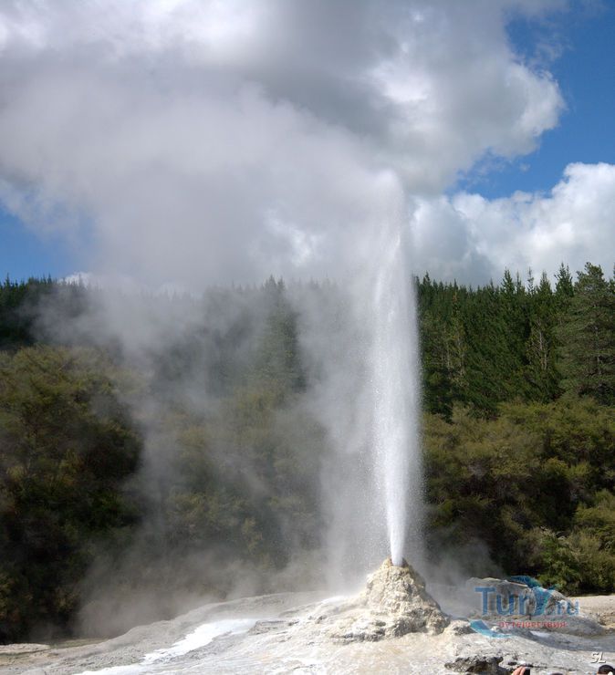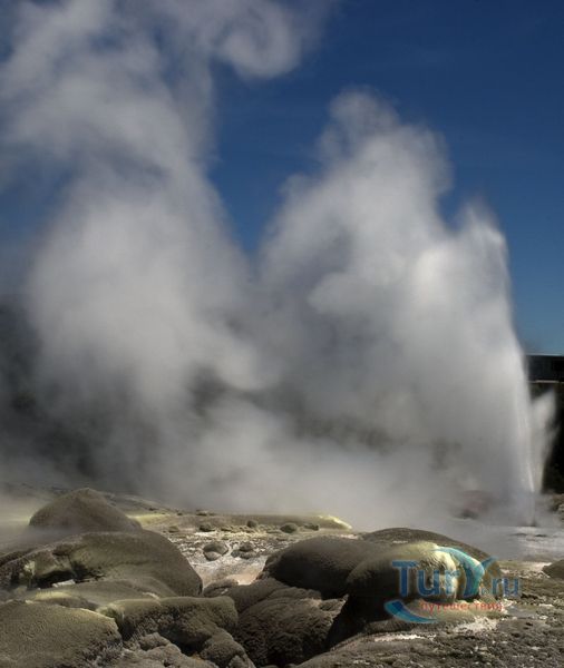 Горячие гейзеры поднимаются над сернистыми скалами у Роторуа. Недалеко от центра новозеландского острова Северный геотермальная активность на Роторуа уже многие годы привлекает туристов. Возникшие в не столь отдаленные времена поселок маори и Институт искусств и ремесел маори дают возможность познакомиться с обычаями древнейшего населения Новой Зеландии. Маори традиционно использовали местные горячие источники для приготовления пищи, купания и обогрева; считается, однако, что эти горячие источники обладают и целебными свойствами, в особенности при таких болезнях, как артрит и ревматизм; больница Королевы Елизаветы по-прежнему использует серные воды в своих лечебных курсах.
