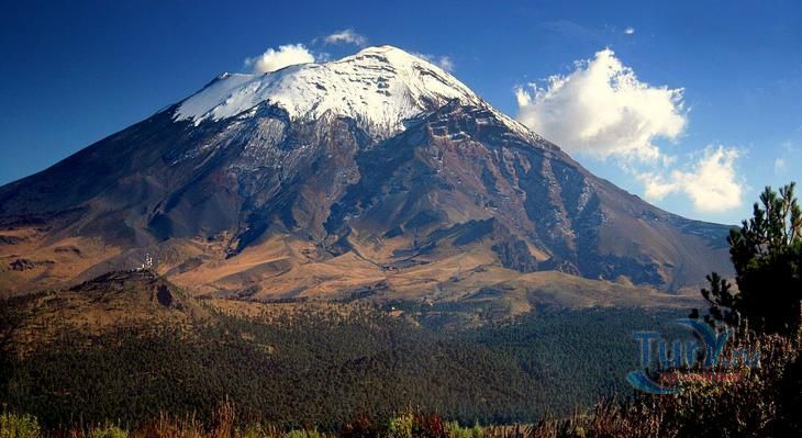 Впрочем, что еще делать вулкану, имя которого в переводе с индейского и означает «дымящая гора». Вершина Попокатепетля возносится на 5452 метра, вокруг кратера всегда лежит снег. С величественной горой связано немало легенд и обрядов. Попо и его соседка Истаксиуатль считались у ацтеков богами, дарующими дождь. Именно к ним обращались в случае засухи, поклонялись и приносили жертвы. Но когда-то Попокатепетль и Истаксиуатль были людьми. Истаксиуатль – дочь ацтекского императора полюбила привлекательного, сильного и смелого воина Попокатепетля. Юноша тоже был неравнодушен к знатной красавице. И все бы хорошо, но отца не устраивали эти отношения, он планировал отдать дочь замуж за знатного человека. Поэтому Попокатепетля отправили воевать в долину Оахака. Сомнений в том, что он там погибнет, у императора не было. Он сообщил своей дочери о смерти возлюбленного. От горя она умерла. Но воин вернулся домой невредимым. Узнав о случившемся, он взял тело девушки и ушел в горы. Где через некоторое время тоже умер от тоски. Но так велика была их скорбь и любовь, что даже боги сжалились и укрыли снежным одеялом каждое тело. Так девушка и воин стали горами. И Попокатепетль до сих пор мстит людям за смерть любимой, периодически извергая лаву и пепел. Заснеженную вершину Попо впервые покорили в 1827 году. Кратер вулкана эллиптической формы, диаметр его (в самом широком месте) равен 600 метрам, глубина в спокойном состоянии 170 метров. В конце XIX века к вершине горы проложили дорогу для промышленных нужд (велась разработка и добыча серы), а также ею пользовались туристы. Но в последние годы вулкан опять стал проявлять признаки активности, поэтому посещать его не рекомендуется.