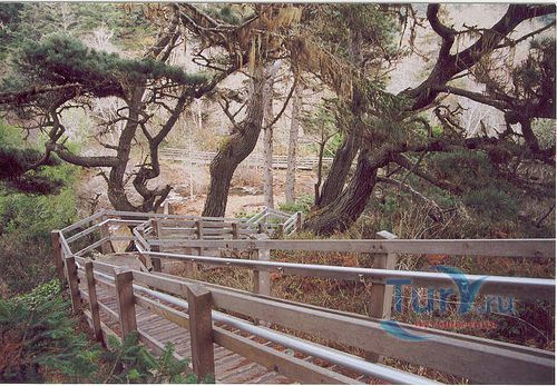 В парке растут классические северные дождевые леса с речками, в которых плещется лосось Кохо, зарослями диких рододендронов и одним из самых больших в мире мест произрастая карликовых сосен.