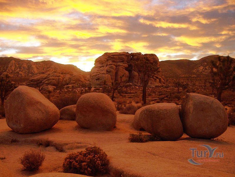 Национальный Парк Джошуа Три - национальный парк США, расположенный в юго-восточной части Калифорнии. Знаменит он в первую очередь благодаря необыкновенным деревьям Джошуа. Назвали их так калифорнийские мормоны в честь пророка Джошуа (Иеремии), так как форма деревьев напомнила им человека, поднимающего в мольбе рук к небу.