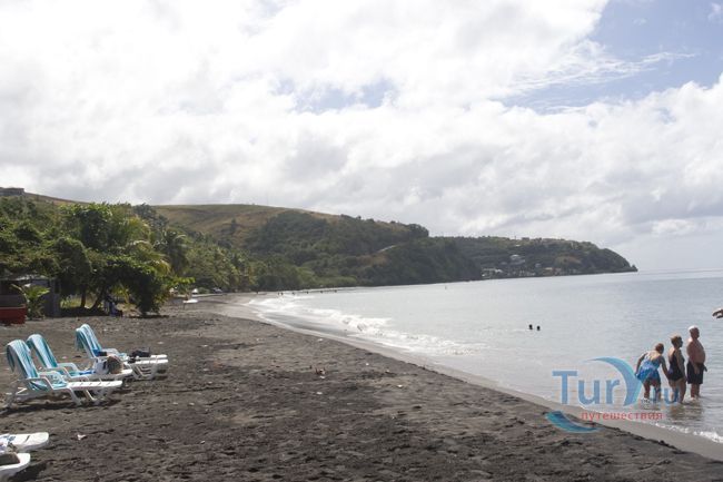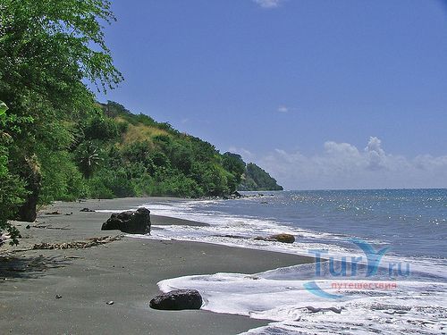 Пляж на юго-западном брегу Доминики недалеко от городка Меро, по улочкам которого можно совершить увеселительные прогулки.