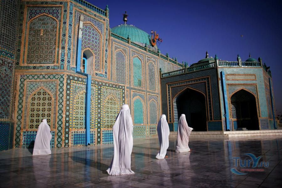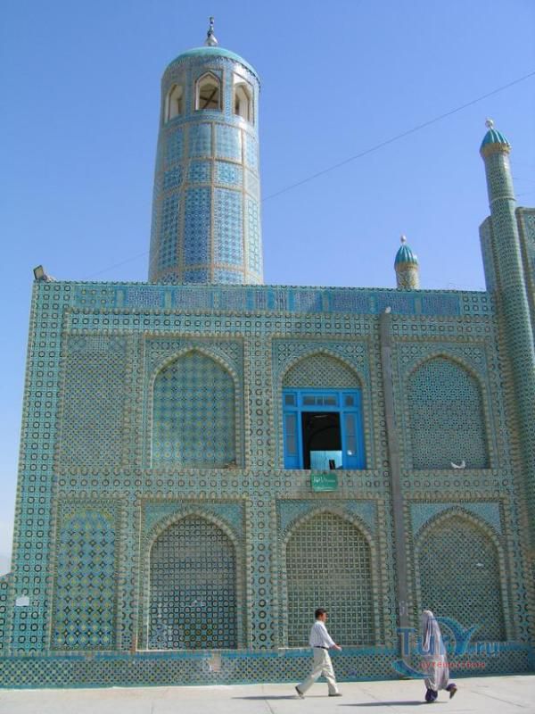 В Мазари-Шарифе находится уникальный храмовый комплекс Розии Шариф (Голубая Мечеть). Как гласят местные легенды — это гробница Хазрат Али, четвёртого праведного халифа ислама, особо почитаемого шиитами. Настоящая могила халифа Али находится в городе Неджефе в Ираке, однако дополнительные мазары как места поклонений — явление частое в афганской и таджикской религиозной практике. По этой причине Мазари-Шариф служит местом поклонения. Гробница Хазрат Али —религиозный, деловой и географический центр города и одновременно его единственная архитектурная древность. Выглядит как сгусток чистого неба, который спустился на землю и расцвёл разнообразнейшими узорами - цветочными, каллиграфическими и геометрическими, в виде солнцеворотов и звёзд. Вокруг всего комплекса - две концентрические ограды. Между ними разгуливают белые голуби, которых служители и посетители мечети подкармливают пшеном и всячески холят и лелеют; есть даже специальные голубиные бассейны и голубиный домик в виде минарета. Помимо собственно гробницы (закрытой для немусульман) есть мечети, медресе, гостиница для паломников и некий музей истории. Площадь выложена плитами из серого мрамора. Гулять, снимать и общаться здесь можно беспрепятственно и бесплатно. Ночью купола мечетей подсвечиваются неоновыми гирляндами и ярко-красной арабской надписью "Али".