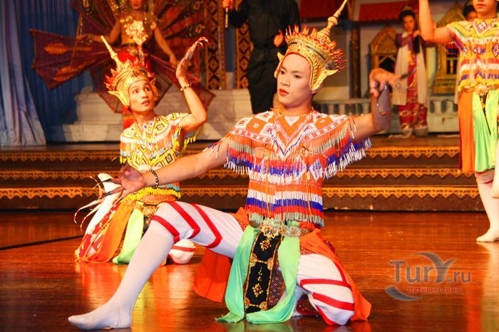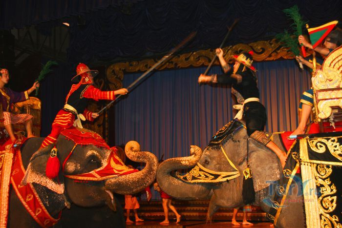 Вам будут продемонстрированы национальные танцы различных народностей Тайланда, яркие костюмы, национальный бокс - Муай Тай, игра на барабанах и даже воссоздание древней битвы народов на слонах. Все действие происходит на выдвижной сцене, ярко освещенной софитами. Это представление никого не оставит равнодушным.