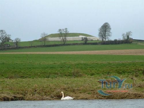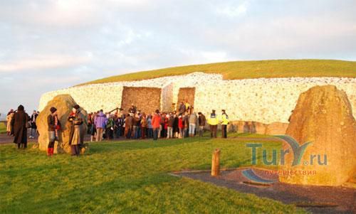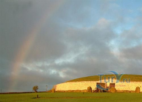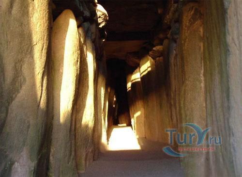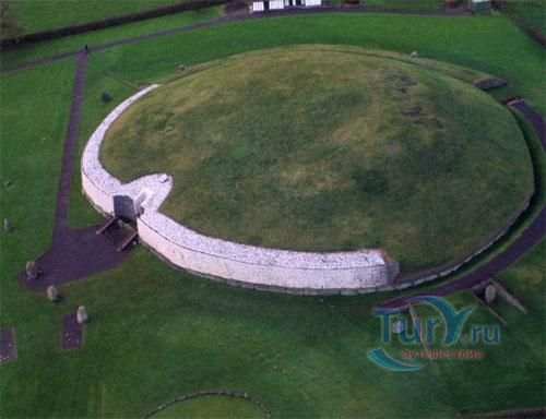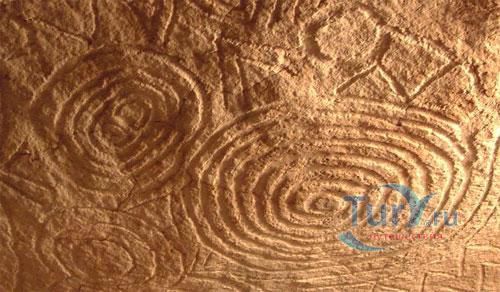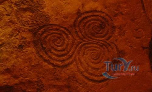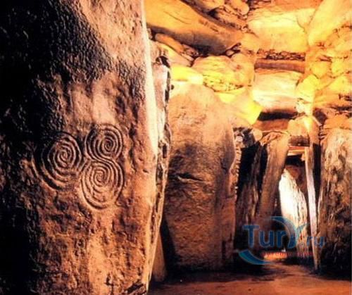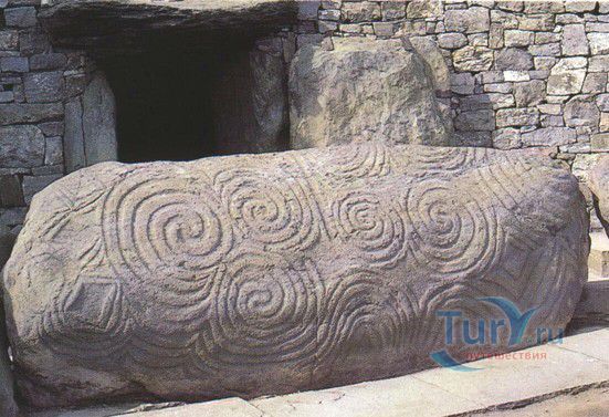 Рисунки на мегалитах Нью - Грейндж , Ирландия , наводят на мысли о параллелях с микенской культурой , однако радиоуглеродный анализ показывает , что их возраст куда более солидный. Люди, обнаружившие Нью-Грендж в 1699 году в поисках строительного материала, назвали свою находку пещерой. Ее отнесли к эпохе кельтов и долго считали гробницей кельтских королей, датируя ее возникновение первыми столетиями нашей эры. Связывали Нью-Грендж и с шахтовыми могилами в Микенах. На самом же деле он много старше Микен, старше каменных глыб Стонхенджа и даже старше египетских пирамид. Нью-Грендж, почитаемый в ирландской литературе как колыбель культуры Бойн, - это погребение-мегалит, оно возникло за три с половиной тысячелетия до н. э. и отражает первобытный уклад палеолита, переживавшего в ту пору в долине реки Бойн период своего расцвета.Внутрь погребальной камеры, в центре которой расположены три ниши, ведет ход-тон нель шириной 0,9 и длиной 16,7 метра, сооруженный из массивных каменных глыб. Высота его на входе составляет 1,5 метра, а непосредственно перед камерой она увеличивается почти вдвое. Само погребение, как и ведущий К нему ход, укрыто огромным курганом, сложенным примерно из 200 000 тонн камней и засыпанным поверху землей. Вся постройка была тщательным образом защищена от проникновения воды и окружена кольцом вертикально поставленных валунов. Нью-Грендж и по сей день оставляет открытыми множество вопросов. Почему в столь солидном могильнике покоятся останки всего лишь пяти человек? Каким образом были доставлены сюда - и не по частям, а целиком - эти огромные каменные глыбы? Или, быть может, их занесло ледниками? Сколько лет длилось строительство и сколько человек в нем участвовало? Некоторые из камней украшены различными геометрическими орнаментами. Но почему узоры эти расположены иной раз в таких местах, что к ним почти невозможно подобраться, дабы их разглядеть? Несколько больше ясности появилось в другом вопросе. Профессор О\\\'Келли - археолог, возглавивший раскопки Нью-Гренджа, - сумел установить: могильник расположен таким образом, что в день зимнего солнцестояния свет восходящего солнца падает сперва на боковую стену хода-тоннеля, а затем проникает в погребальную камеру. И рке в ту пору, когда был соорркен этот гигантский могильник, солнечный луч выхватывал из тьмы один-единственный украшенный орнаментом камень в самом дальнем конце камеры. Первоначально вход в гробницу был заложен большим камнем. Однако и в те времена искусно сконструированная щель между входом в тоннель и его потолком оставляла доступ для солнечного света. Но эффект проникновения солнечных лучей в самую глубь камеры можно наблюдать только в день зимнего солнцестояния. Подобное же расположение могильника известно по кургану Мэс-Хью на Оркнейских островах в Шотландии, который датируется примерно 2700 годом до н. э. Но там погребальная камера освещается зимой лучами заходящего солнца. Значение солнечного света для могильника Нью-Грендж подкрепляет гипотезу, выведенную учеными на основании древних ирландских сказаний о связи этого захоронения с богом Солнца - Дагда.