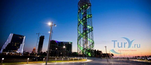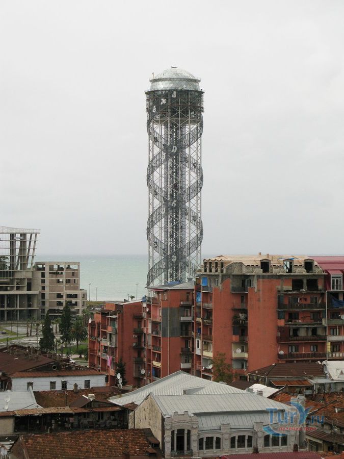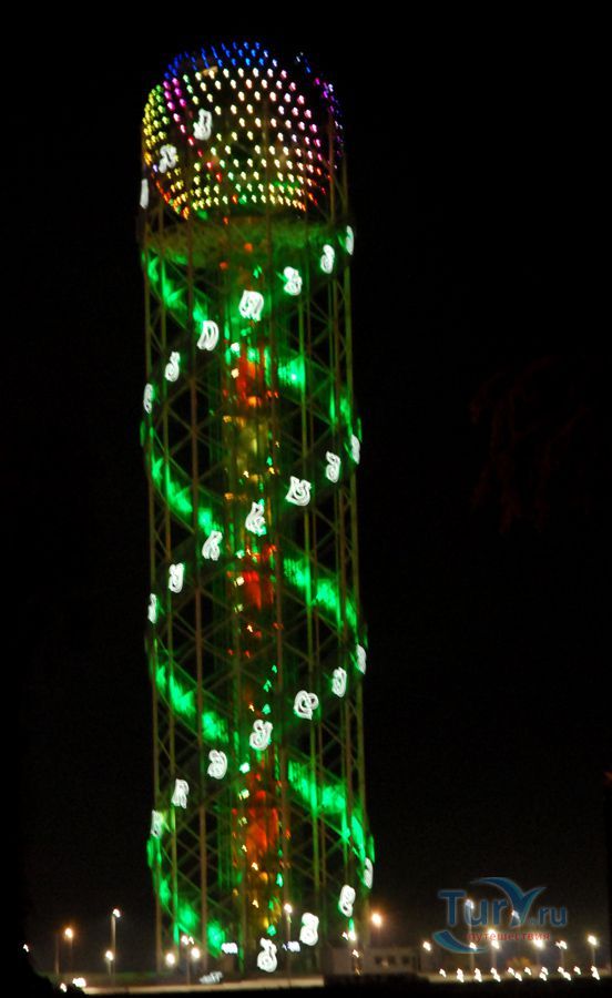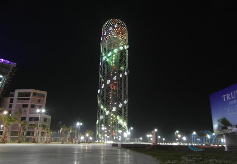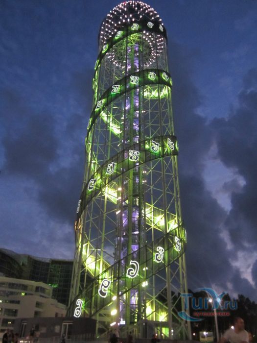 Башня грузинского алфавита была построена в 2012 году по проекту испанского архитектора Альберто Доминго Кабо и уже стала одним из главных символов города. Конструкция представляет собой подобие клеточного ДНК, нуклеотидами в котором являются буквы из грузинского алфавита. Находится это необычное сооружение в Батумском «Парке чудес».