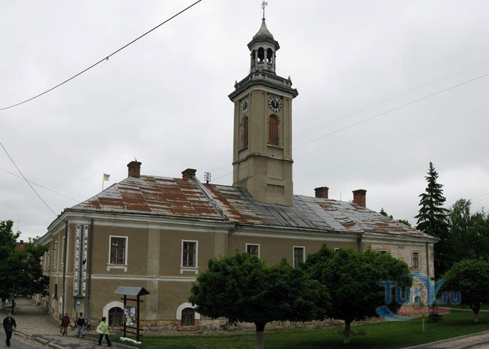Ратуша в Бережанах возведена в 1803 - 1811 годах, в стиле классицизма на месте древней деревянной ратуши. Представляет собой двухэтажное прямоугольное здание с двухъярусной башней и внутренним двором. Ратуша построена в в стиле классицизма на месте древней деревянной ратуши. В 1811 году ратушу увенчали башней-часовней. Первый этаж занимали магазины, а второй - помещения гимназии, располагавшейся здесь до 1925 года. Сейчас в помещениях размещены экспозиции нескольких музеев: Краеведческий музей, Музей книги, Музей Б. Лепкого, Музей репрессированной церкви.