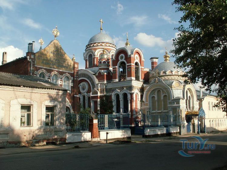 Великокняжеская церковь и дом призрения. Оригинальность этой церкви заключается в наличии хрустального креста вверху на главном куполе (в момент постройки такого креста больше нигде в России не было). В металлическую раму вставили полые двухслойные хрустальные колбы, внутри которых горели электролампы, выкручивающиеся с наружной стороны. Крест омывался водой из капельницы, вода из водопровода подавалась насосом по трубочке к вершине креста. Между стенками хрустальных колб она стекала к основанию. Крест, светящийся ночью и сверкающий от воды днем, был виден за несколько километров от города.