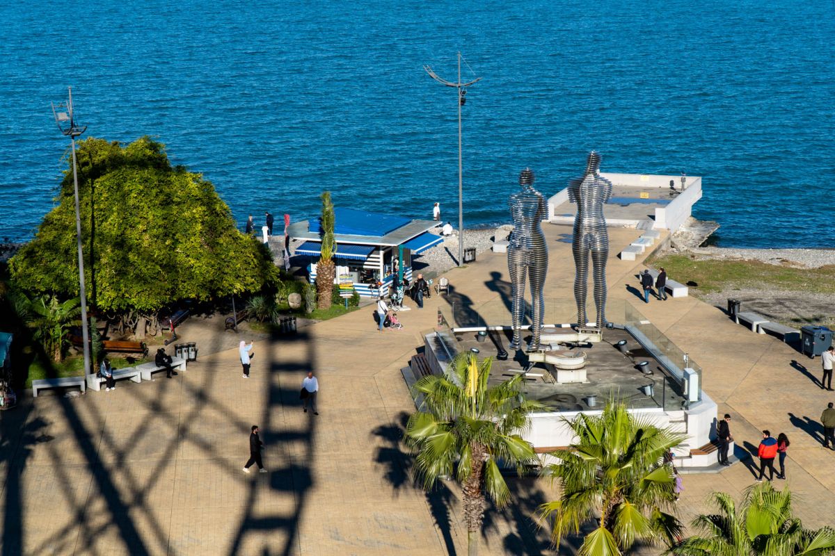 Батуми, Грузия — статуя любви, которая рискует стать самой оригинальной скульптурной композицией в мире. Движущаяся скульптура любви высотой семь метров, двигается с интервалом 8-10 минут. Скульптура представляет из себя фигуры мужчины и женщины, сделанные из стали, которые двигаясь друг к другу, становятся одним целым.