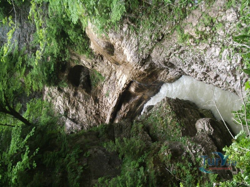 Гуамское ущелье расположено между поселками Мезмай и Гуамка (Апшеронский район). Это ущелье реки Курджипс. Добраться можно из Краснодара до Апшеронска на рейсовом автобусе (3 часа) и далее по узкоколейке на поезде 80 км.