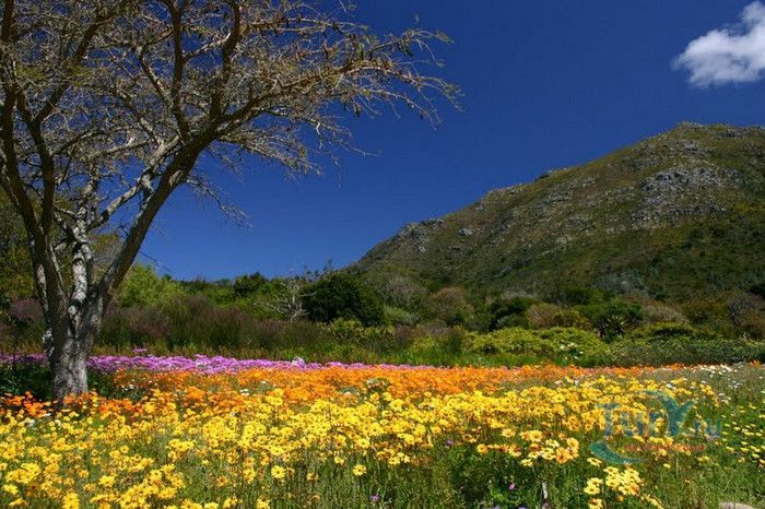 Национальный Ботанический Сад Кирстенбош - один из самых больших и красивых в мире ботанических садов, расположен в Южно-Африканской Республике, на восточном склоне Столовой горы, в 13 км от центра Кейптауна. Ботанический сад Кирстенбош основан в 1913 году с целью сохранения и демонстрации богатства и разнообразия эндемичной флоры Южной Африки. Инициатором его создания и первым директором был профессор ботаники Гарольд Пирсон. На этом посту он пробыл всего 3 года, внезапная смерть от пневмонии в 1916 году прервала его грандиозные планы, но идеи учёного не были забыты. Гарольд Пирсон похоронен в своём любимом Кирстенбоше, на могильной плите высечены слова: "Если вы ищете его памятник, оглянитесь вокруг себя". Ботанический сад занимает территорию площадью 528 гектаров, на которой представлены более 7000 растений, в том числе редкие и исчезающие виды. На открытом пространстве сада произрастают преимущественно представители флоры Капского региона, в том числе большая коллекция протей (цветок протеи является национальным символом ЮАР), в оранжерее собраны растения из различных районов Африки. Из ботанического сада по специально оборудованным тропам можно подняться на вершину Столовой горы. Один из маршрутов проходит через ущелье Скелета, этот путь известен как "Тропа Смэтса", названный в честь бывшего премьер-министра ЮАР Яна Смэтса, очень любившего здесь гулять. К 100-летнему юбилею Ботанического сада Кирстенбош, на высоте 12 метров над землёй, была построена подвесная аллея, длина которой составляет 130 метров. Аллея представляет собой своеобразную смотровую площадку, с которой открывается великолепный вид на ботанический сад и Столовую гору. Конструкция этой аллеи по форме напоминает огромную змею, за что посетители нарекли её Boomslang (Древесная змея). Гуляя по саду, посетители также могут увидеть скульптуры, установленные на газонах и аллеях, посетить художественные выставки, которые постоянно проходят в Кирстенбоше, стать зрителями одного из арт-шоу. В Ботаническом саду есть рестораны, сувенирный и книжный магазины, в садовом центре можно приобрести саженцы и семена местных растений. В 2004 году Кирстенбош (в составе Капской области) был внесен в список Всемирного наследия ЮНЕСКО, став первым в мире ботаническим садом в этом списке.