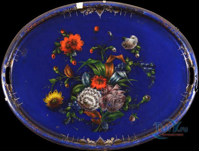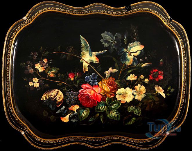 Народный художественный промысел Жостово возник в начале XIX в., главным образом под влиянием уральской цветочной росписи по металлу.